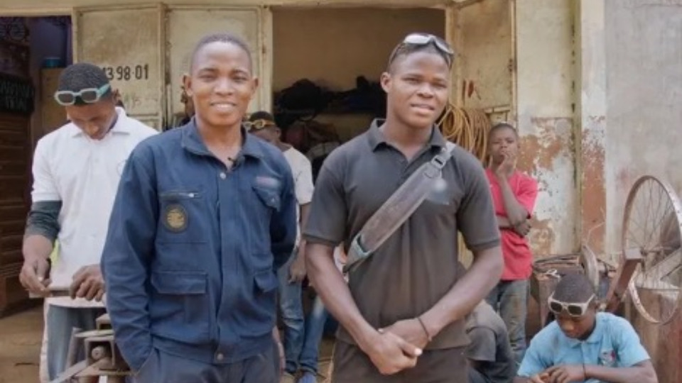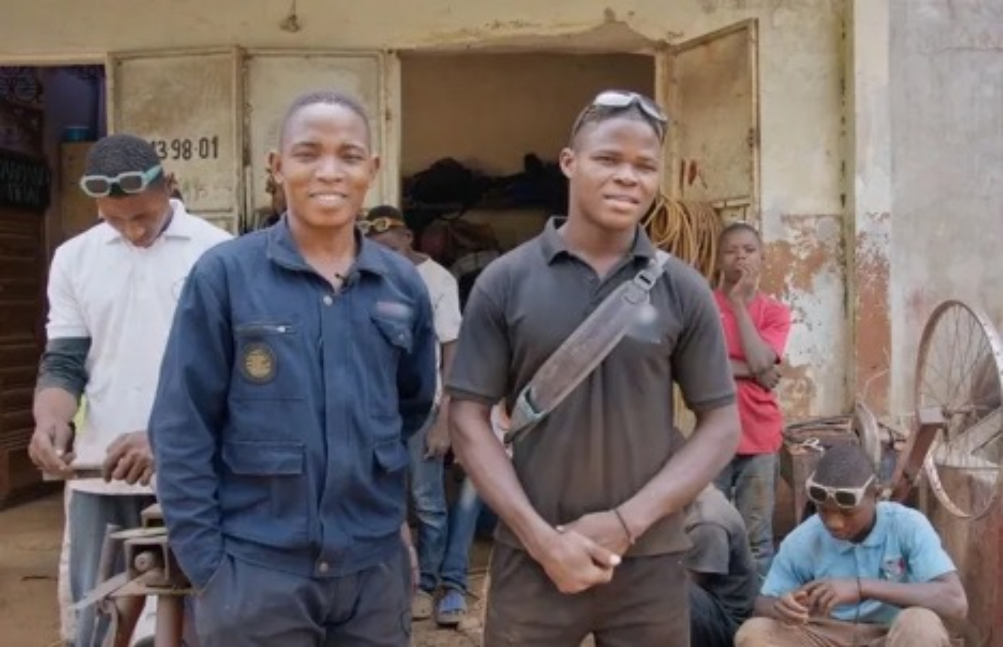 Alexis Ahouayito, of the Republic of Benin, West Africa (right) was encouraged by his mentor, Bishop Legbanon, to attend Succeed in School, while he was an apprentice at the bishop’s welding shop.His mentor, Bishop Darmande Legbanon, encouraged him to attend Succeed in School while he apprenticed at the bishop’s welding shop.