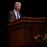 The presiding bishop, a native of Bordeaux, France, traced the roots of a few of those common beliefs and covenants that contribute to the Church’s financial strength — including tithing, self-reliance, provident living and understanding the teachings of Jesus Christ.