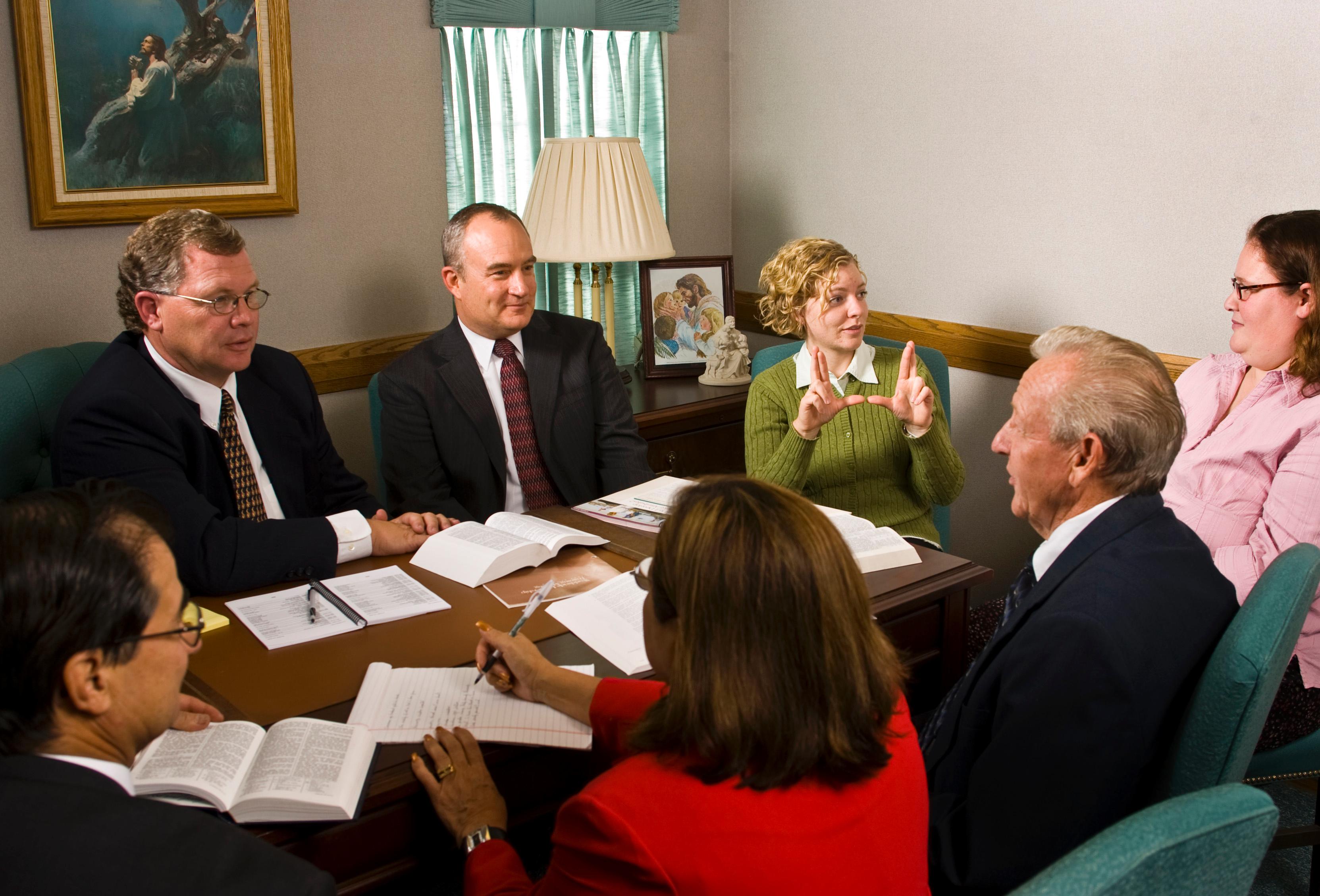 In other congregations, teachers use communication boards to illustrate lesson ideas for children with verbal limitations and interpreters attend meetings to translate discussions into American Sign Language for Mormons with hearing loss.