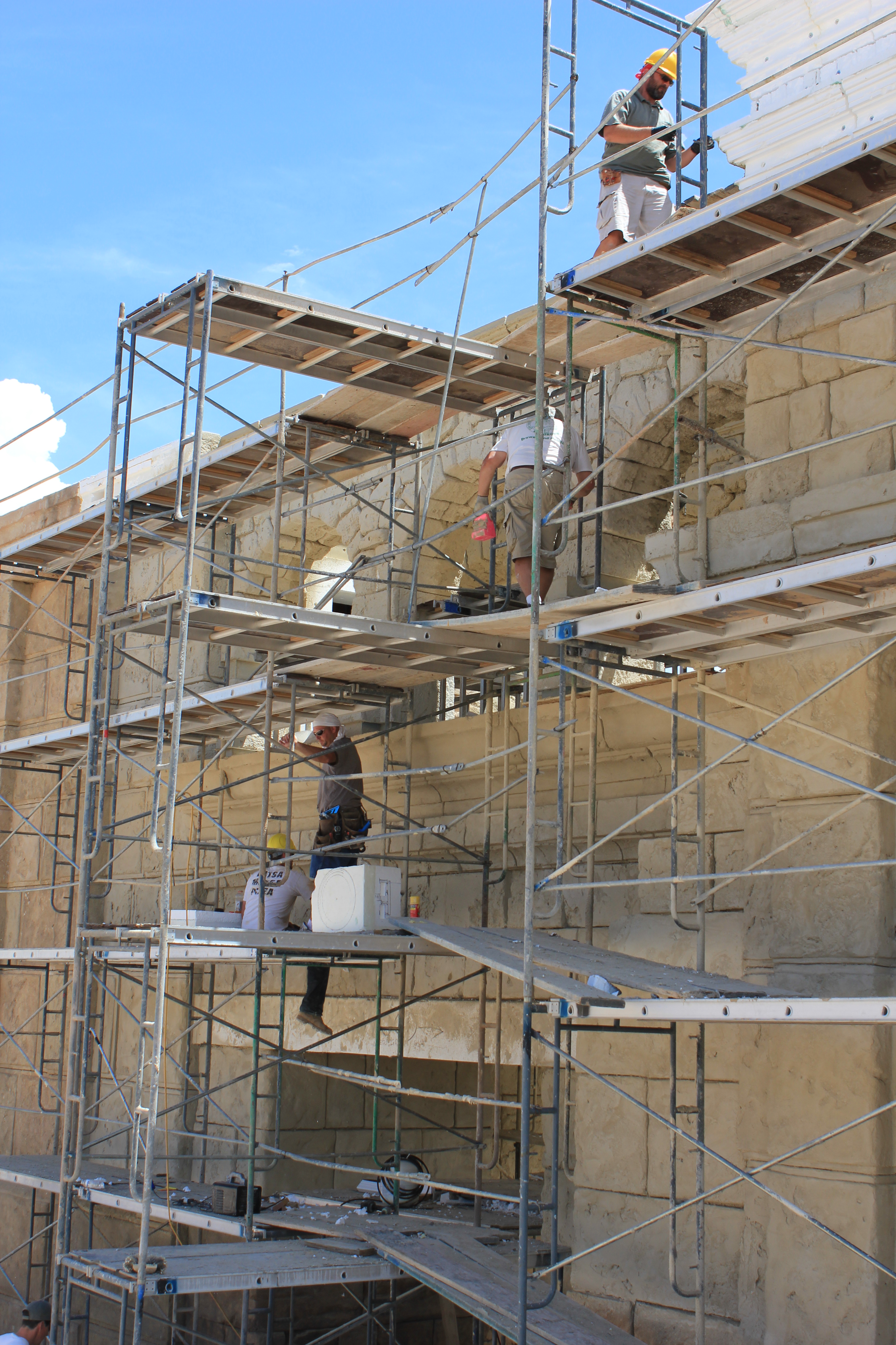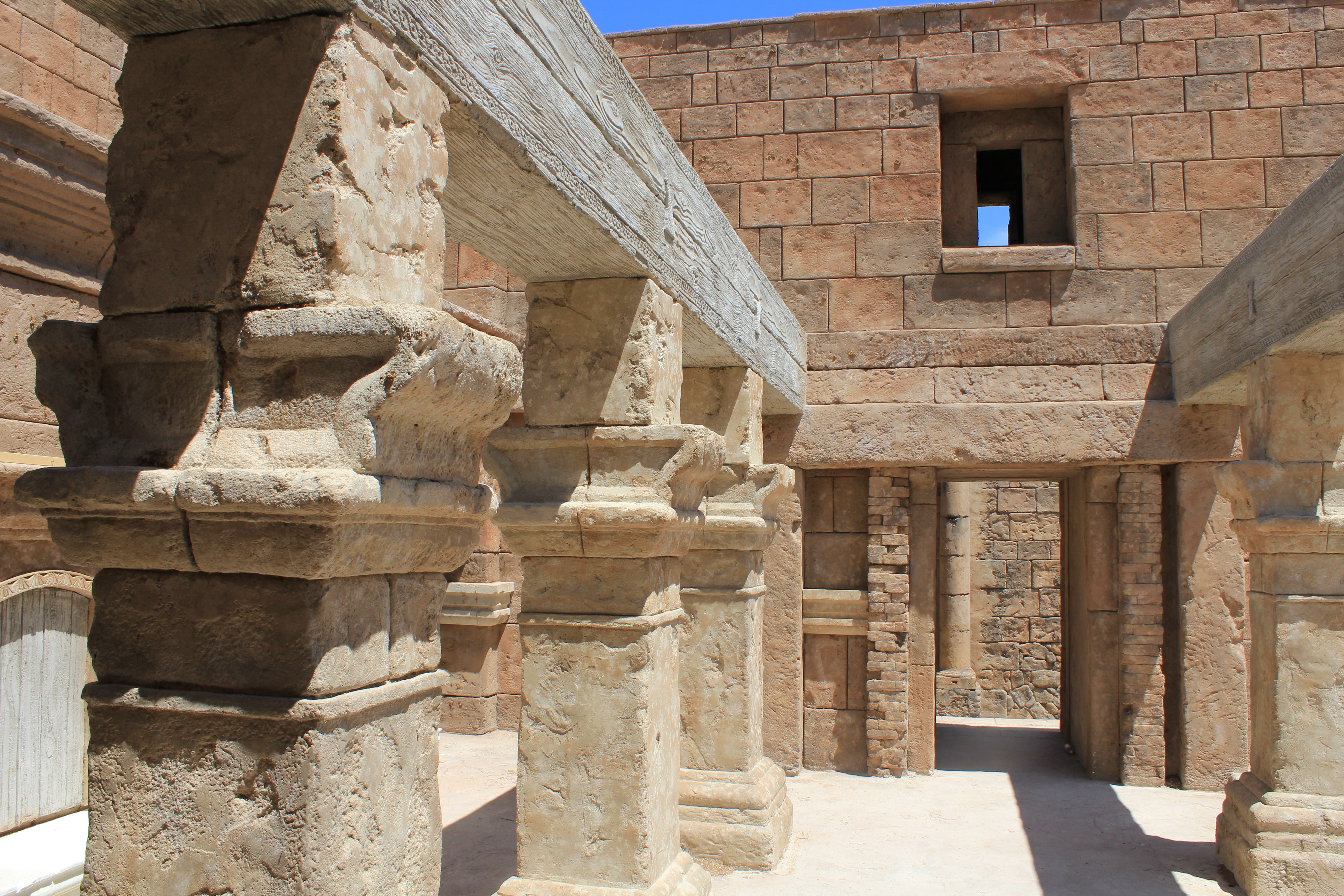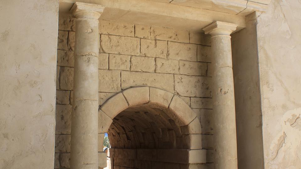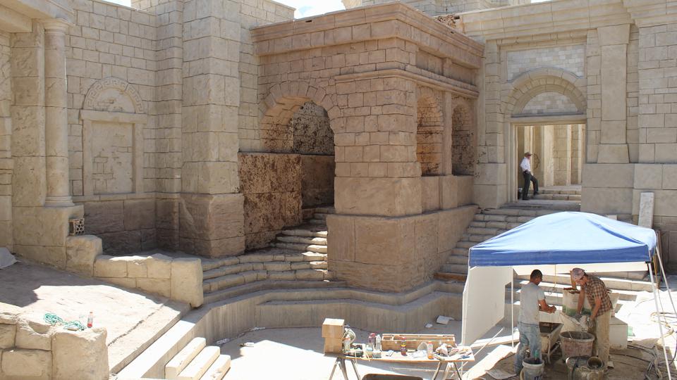Meticulous research has gone into the detail of the replicated ancient city. Using photographs of the architecture of Jerusalem, artisans have carved and shaped, by hand, blocks of Styrofoam, turning them into realistic stone walls, arches and columns. Plywood walls are covered with stucco that mimics ancient plaster and its erosion from age.