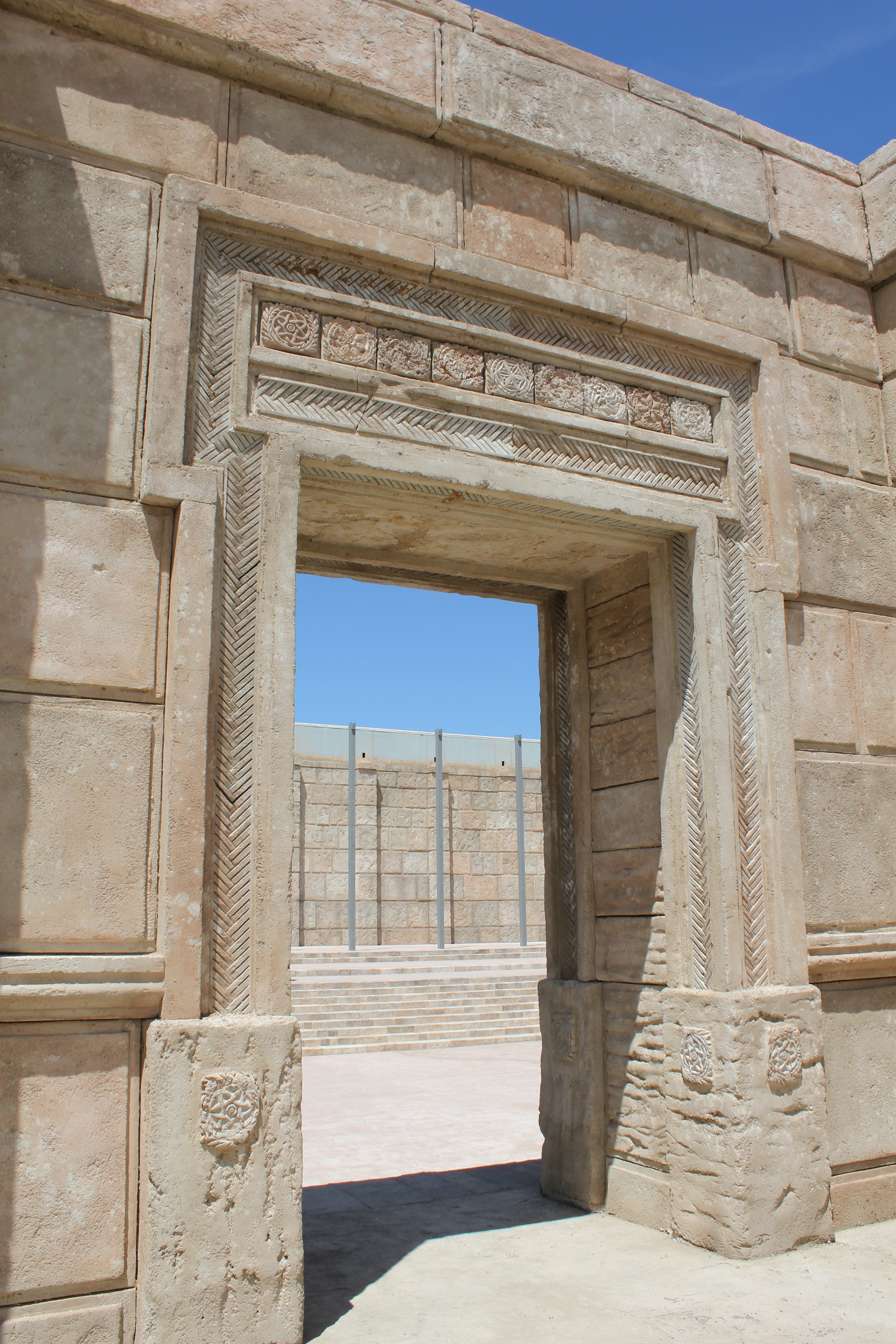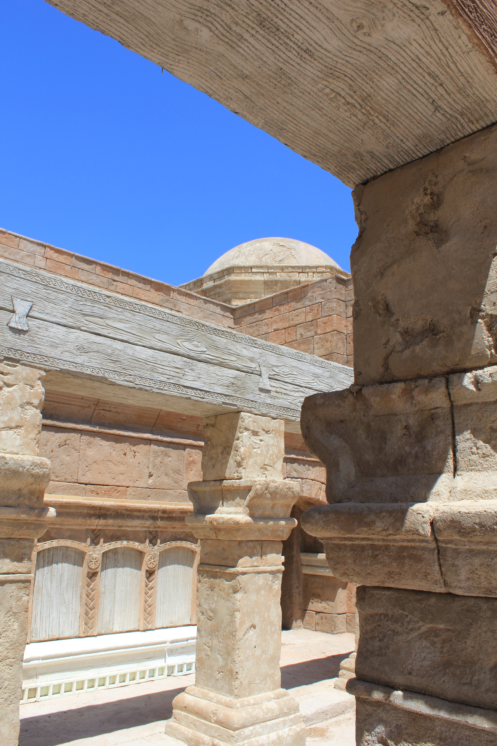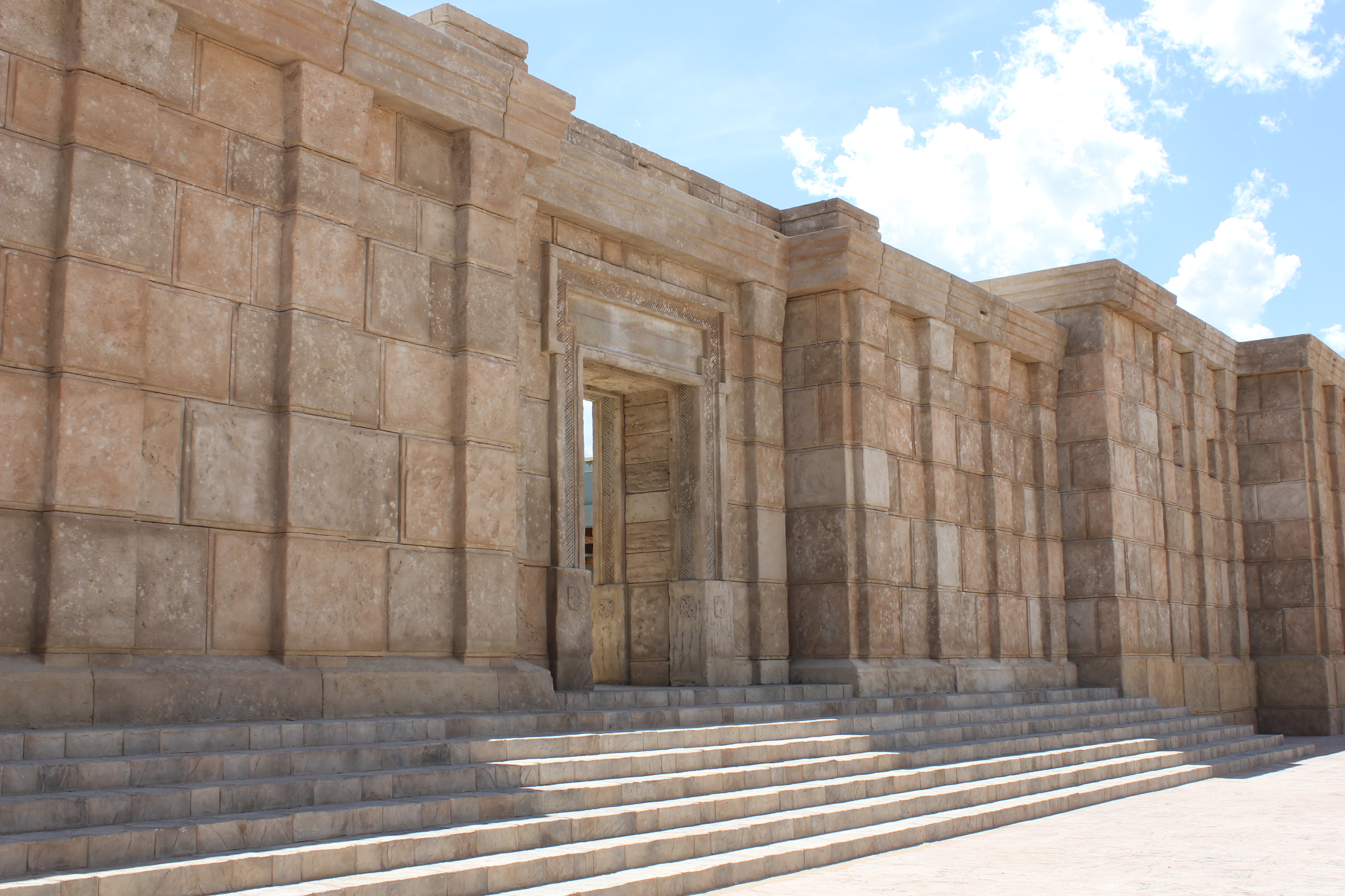 Meticulous research has gone into the detail of the replicated ancient city. Using photographs of the architecture of Jerusalem, artisans have carved and shaped, by hand, blocks of Styrofoam, turning them into realistic stone walls, arches and columns. Plywood walls are covered with stucco that mimics ancient plaster and its erosion from age.