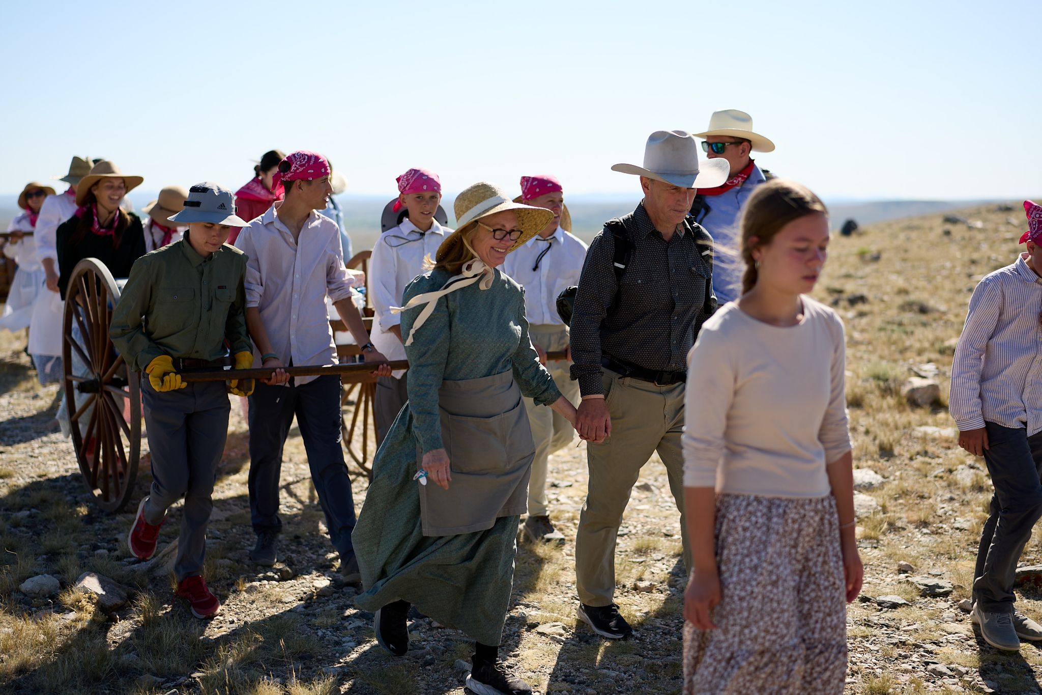 Church Historian and Recorder Elder Kyle S. McKay and his wife, Jennifer, recently joined about 150 youth from the Hooper Utah Pioneer Trail Stake on the Wyoming Mormon Trail July 7-9, 2025, to relive a mid-1800s pioneer experience known today as “trek” by members of The Church of Jesus Christ of Latter-day Saints.