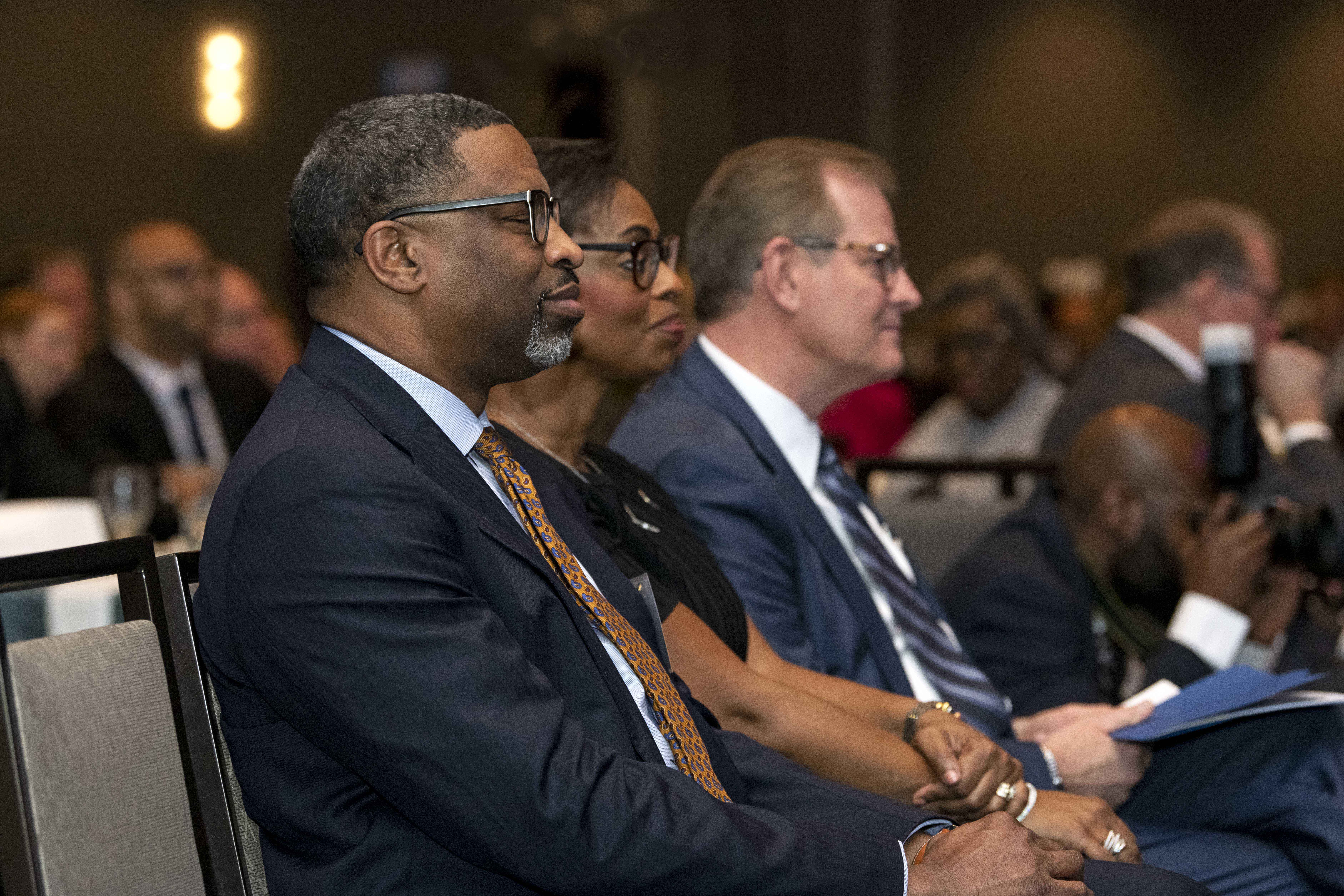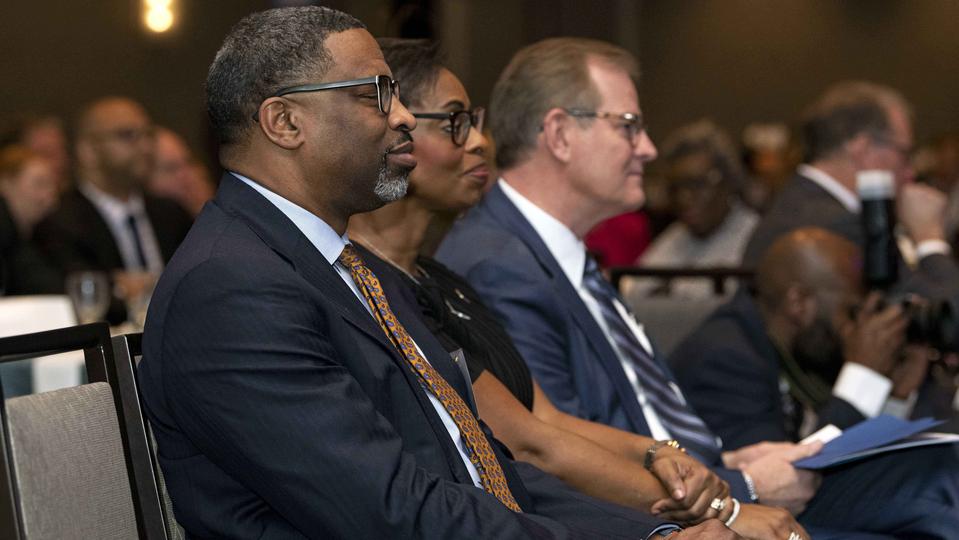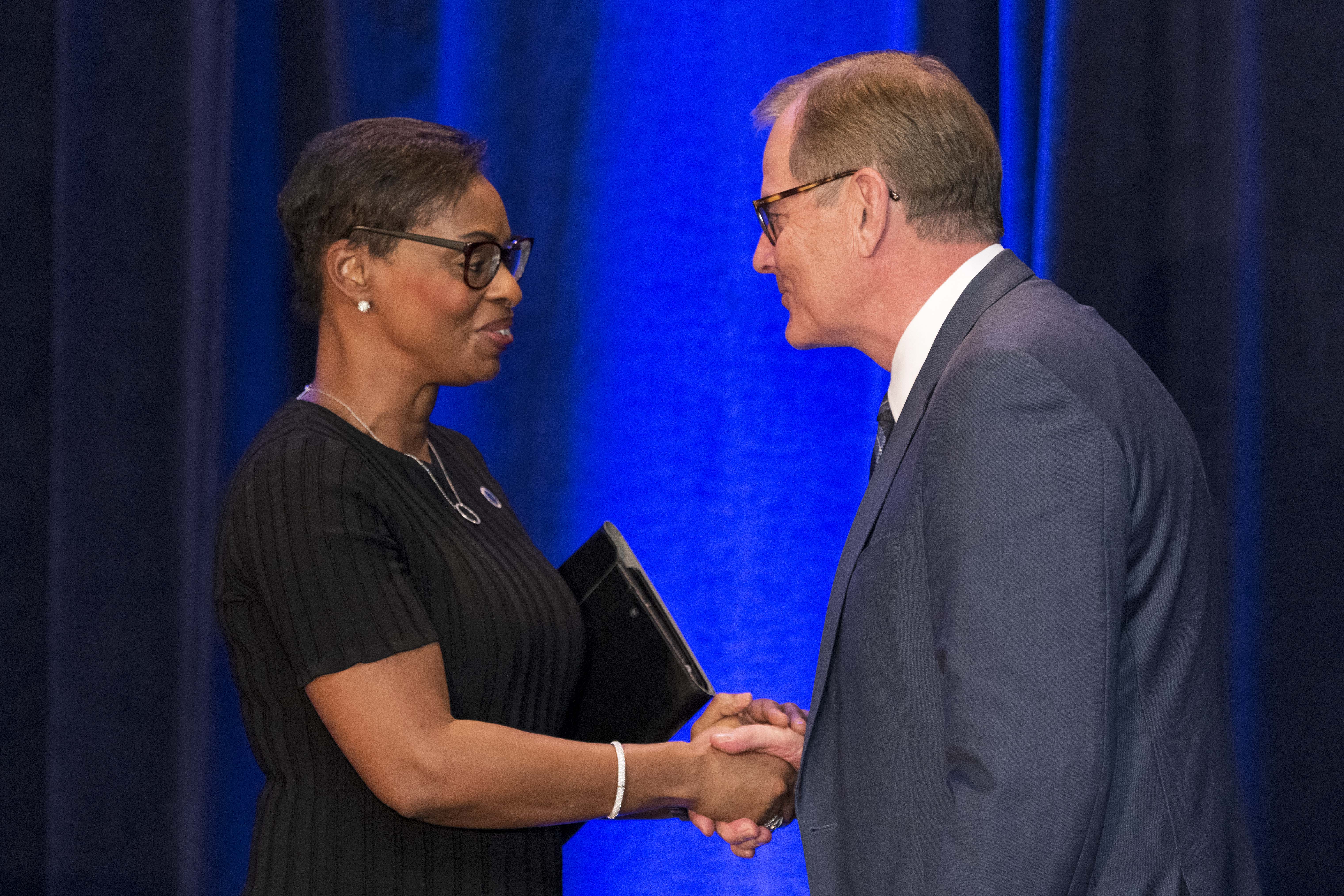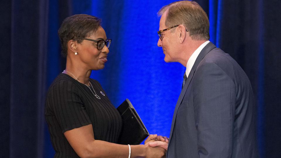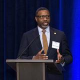 “Thank you for your friendship,” NAACP President and CEO Derrick Johnson said after receiving an award during a gala sponsored by the BYU Management Society at the Crystal Gateway Marriott hotel. “When I’m asked, ‘Why would you attend or accept an award [from] or be present with members of The Church of Jesus Christ of Latter-day Saints?’ I say, ‘Because that’s our neighbor.’”