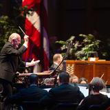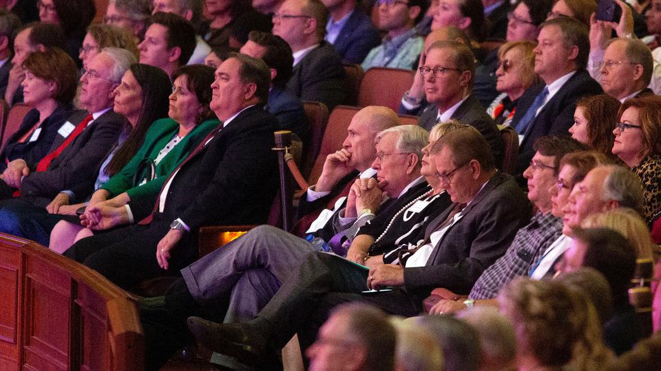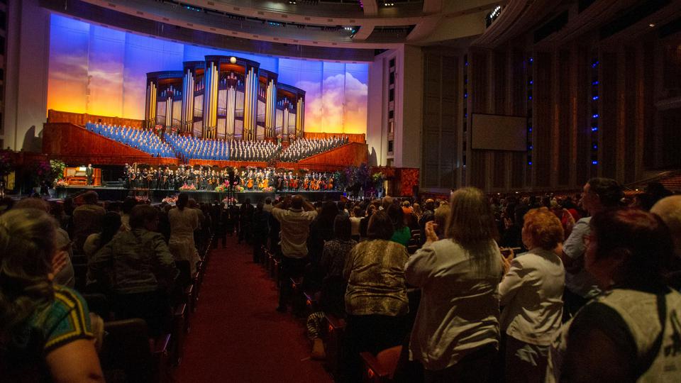 Tuesday evening, the Tabernacle Choir at Temple Square performed a private concert for conference attendees in the Conference Center.