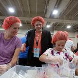 “It was really wonderful that she made the decision to come here and see what was going on with the service project,” said Elder Allen D. Haynie of the Seventy. “I think it’s letting everybody see what people can do when they get united when they care about something that’s important like feeding children.” In fact, he expressed appreciation to all the volunteers.