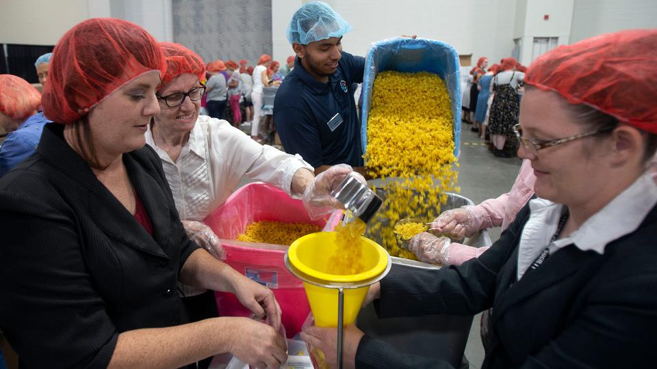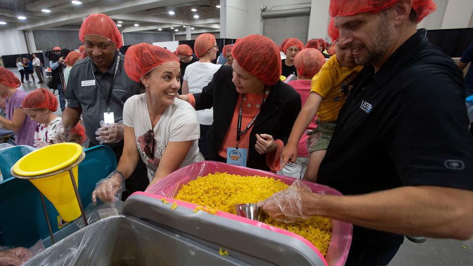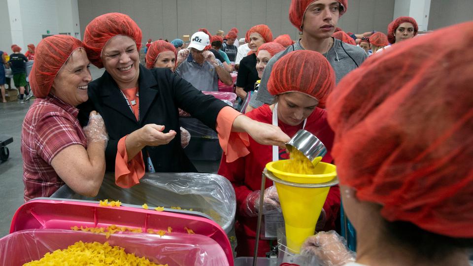 Latter-day Saint Charities, the humanitarian arm of the Church, is partnering with Feeding Children Everywhere, American Airlines and JustServe to assemble 375,000 meals for children in need as part of the conference at the Salt Palace Convention Center.