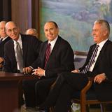 Elders Oaks and Hallstrom represent two of the most senior councils of the Church — Elder Oaks of the Twelve Apostles and Elder Hallstrom of the Presidency of the Seventy.