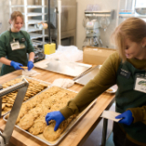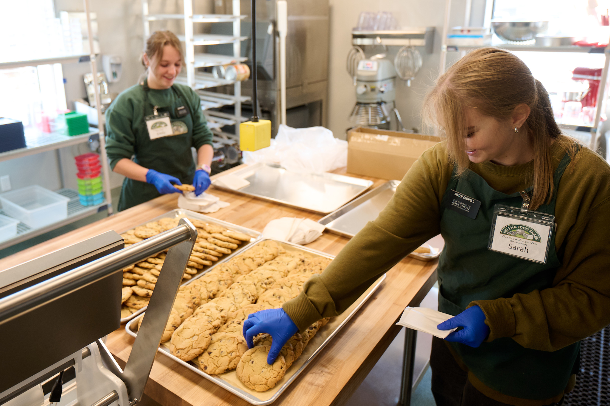 The Church of Jesus Christ of Latter-day Saints was one of 800 organizations and individuals whose contributions helped build the $12 million facility. The Church’s $1.3 million gift to Helena Food Share — its largest humanitarian donation in Montana — provided the fully equipped commercial kitchen capable of producing large quantities of prepared foods, such as soups, bread and cookies. A variety of cookies were among the first items made for the open house celebration, according to Sister Sarah Crowell, a Latter-day Saint missionary volunteer.