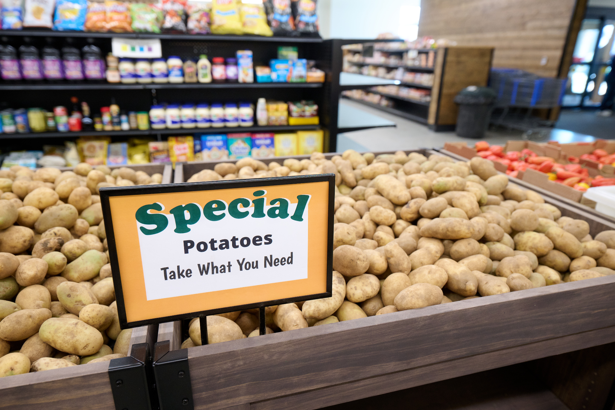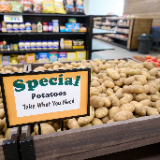The Market is a food selection area in the facility that is set up like a grocery store with similarities to the bishops’ storehouses of The Church of Jesus Christ of Latter-day Saints. It provides a dignified experience for shoppers to select produce, dairy products, bakery goods, canned goods, and snacks like chips and cookies.