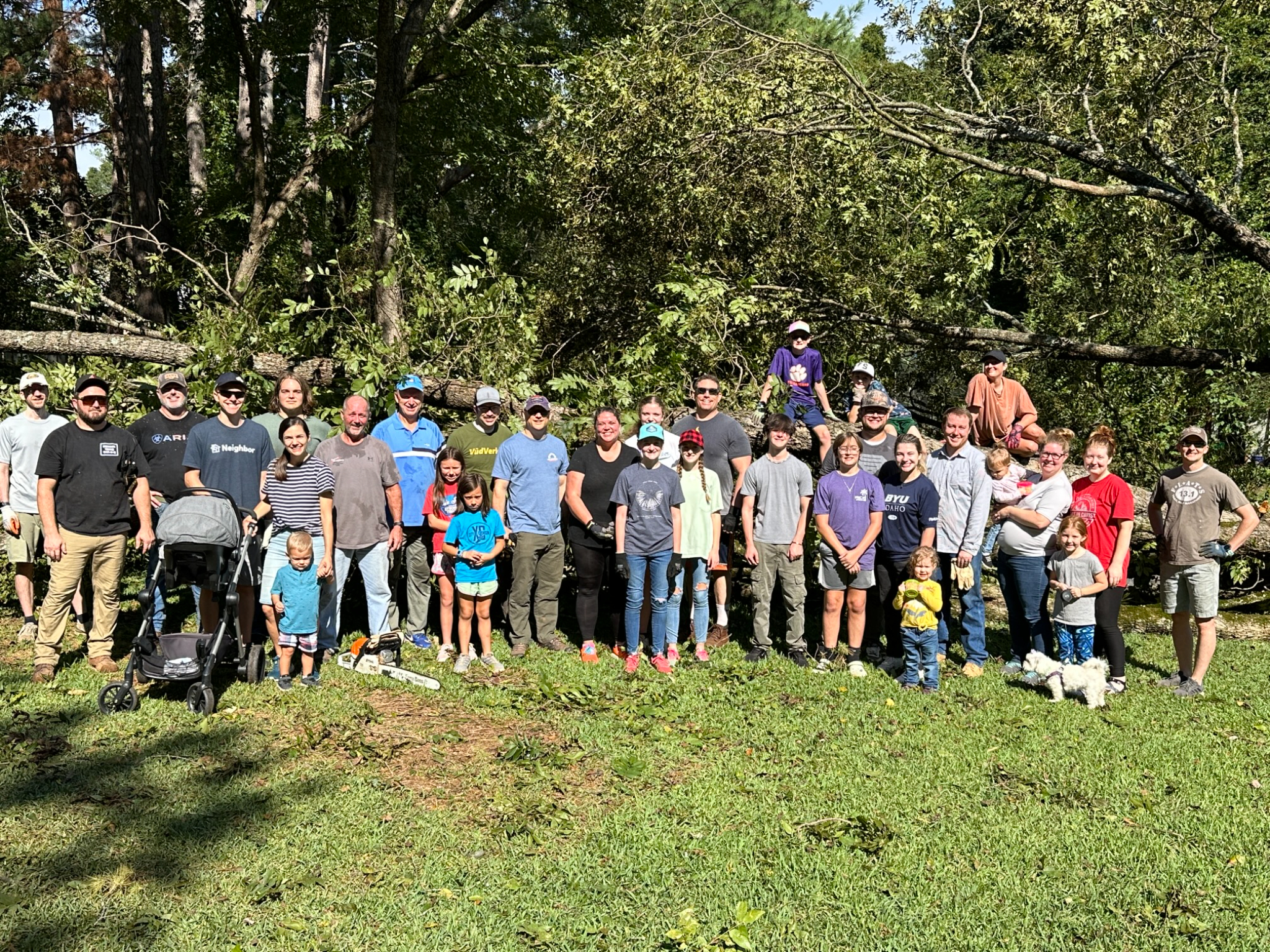 “In times of great need, we continue to depend upon surrounding Latter-day Saint congregations to love and serve those in need,” said Elder Craig C. Christensen, President of the Church’s North America Southeast Area. “In doing so, we serve as the Savior did and exemplify the meaning of the name of His Church, the same name that is printed on those bright and recognizable yellow shirts that bring hope to their communities with a wheelbarrow and chain saw in hand.”