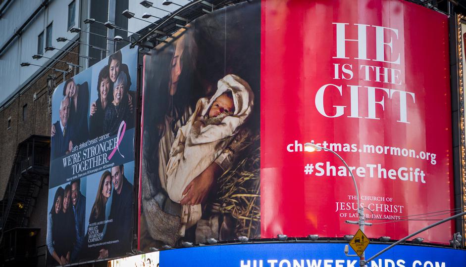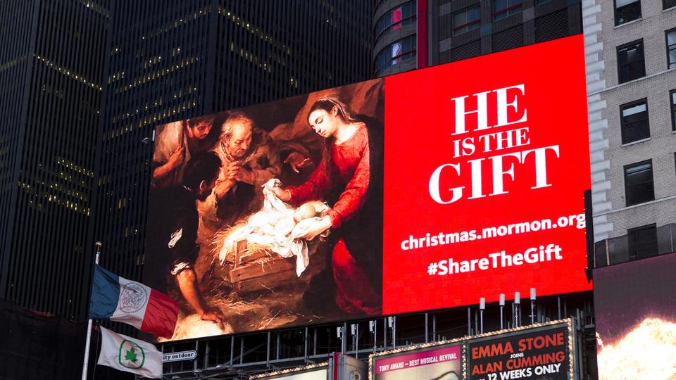 An effort to share a message about Jesus Christ during the Christmas season will be underway throughout the month of December by The Church of Jesus Christ of Latter-day Saints. The month-long Christmas initiative focuses on Heavenly Father’s love as demonstrated in the sacred gift of Jesus Christ (see John 3:16). The “He Is the Gift” initiative is expected to reach millions during the month through social media, displays in visitors’ centers, member and missionary tools, online paid promotion and outdoor advertising in New York City’s Times Square.