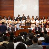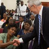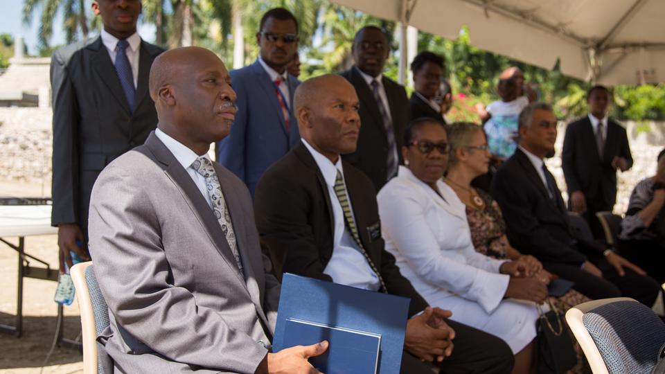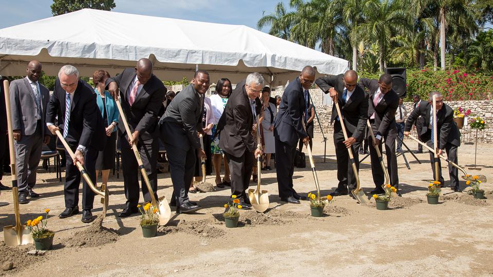 Elder Walter F. González of the Seventy and president of the Caribbean Area for The Church of Jesus Christ of Latter-day Saints directed the groundbreaking ceremony. Elder Claudio D. Zivic and Elder Jose L. Alonso, counselors in the Area Presidency, also participated. They hosted Dominique Saint-Roc, mayor of the community of Pétion-Ville, location of the Port-au-Prince Haiti Temple.