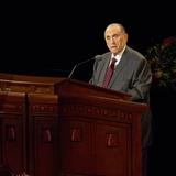President Monson was the concluding speaker; Relief Society general president Sister Linda K. Burton spoke first, followed by her counselors, Sisters Carole M. Stephens and Linda S. Reeves.