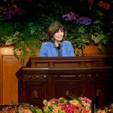 Second counselor Sister Linda S. Reeves emphasized that keeping our promises to the Lord will help us in times of difficulty. She drew an analogy between adversity and the fire that gutted the Provo Tabernacle nearly three years ago. Sister Reeves noted that the burned building will be reconstructed into a temple, much as God can create beauty in our lives from what seems like tragedy.