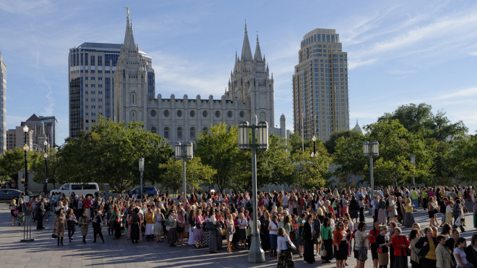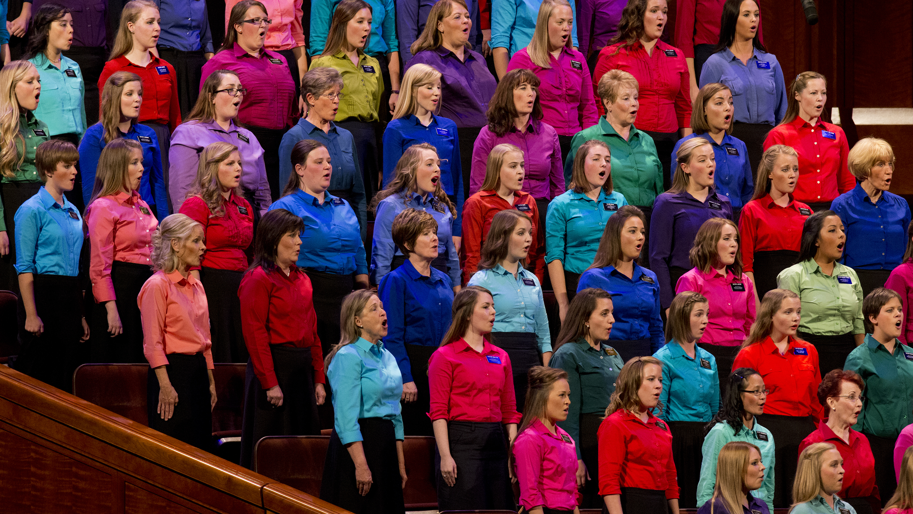 The choir for the meeting was composed of female missionaries from the Church’s missionary training center in Provo, Utah.