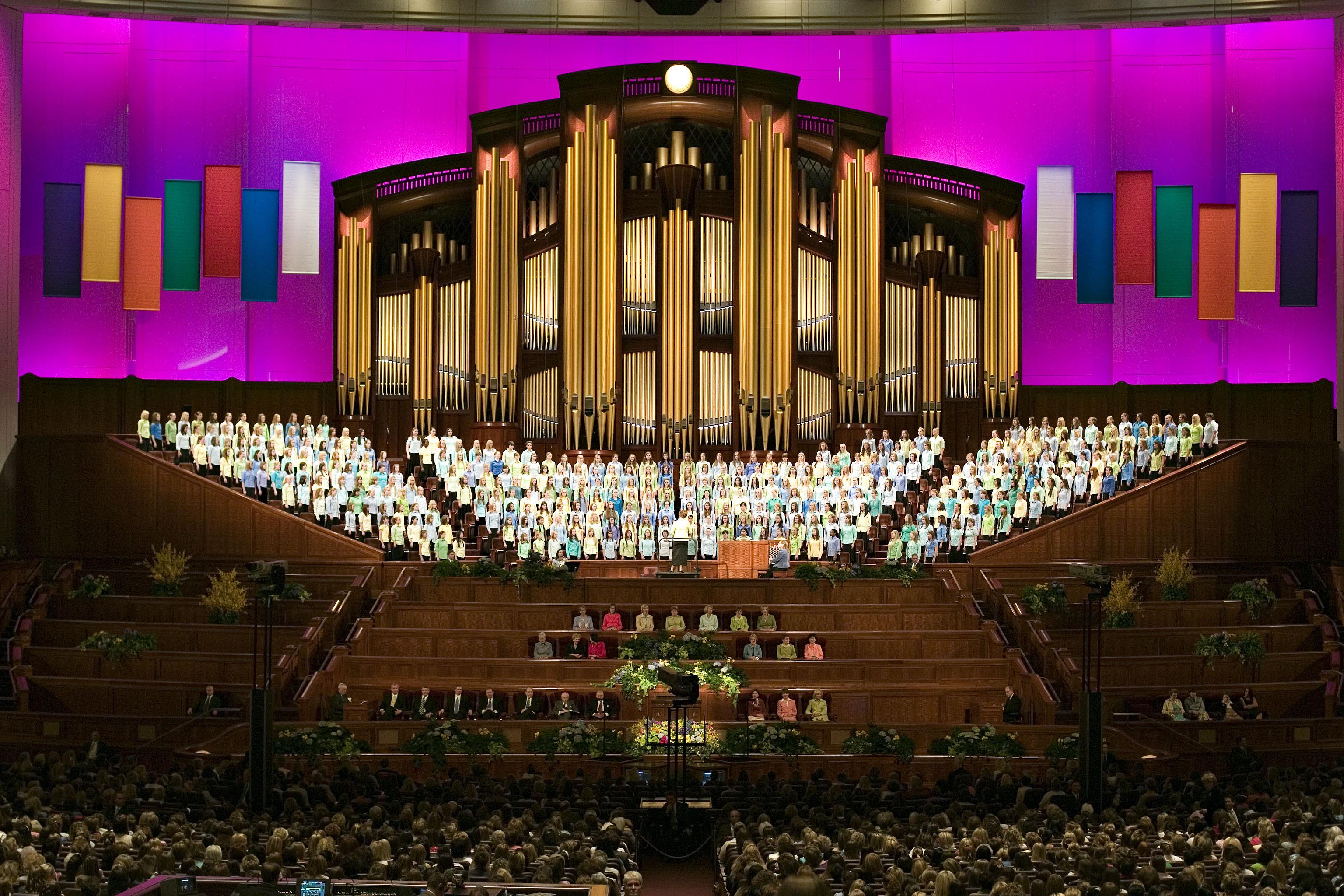 The meeting was a gathering of Mormon young women between the ages of 12 and 18. Over 20,000 attended the meeting at the Conference Center in Salt Lake City, with hundreds of thousands watching via satellite at Church buildings around the world.