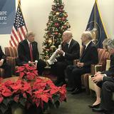 President Eyring and President Nelson expressed their appreciation to the president for the efforts by his administration to protect religious freedom. President Eyring gave the president a Christus statue before he departed for the Utah State Capitol.