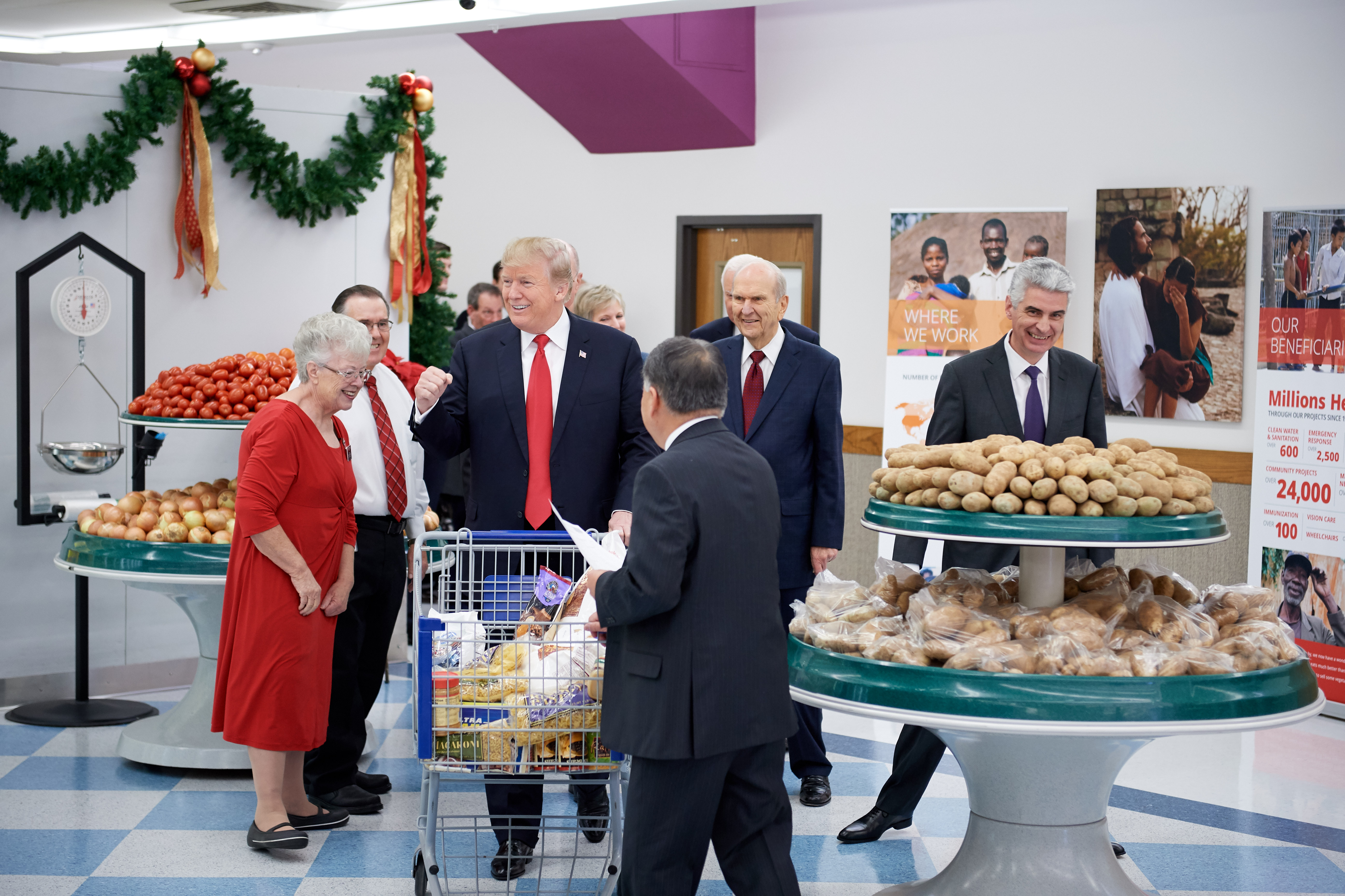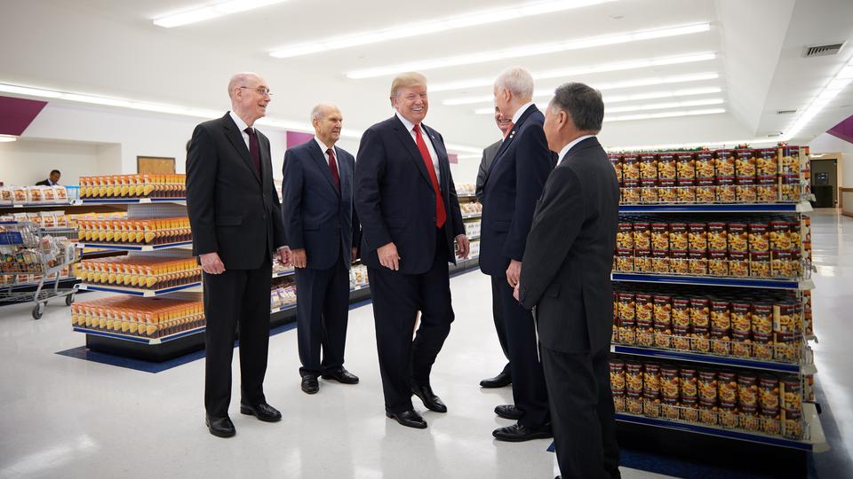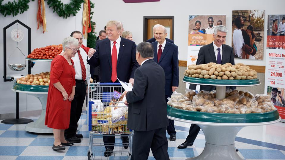 "We're here in a place where we have food and materials that we give to the poor," explained President Eyring. "This is simply an example of what we do across the world, the idea being that we think we have an obligation to God to look out for the people who, without our aid, have tragedy in their lives, be it poverty or hunger."