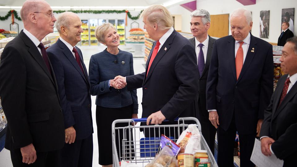 In referring to the Church, President Trump said, “This is very exciting for me. The job you’ve done is beyond anything you could think of — taking care of people the way you take care of people and the respect that you have all over the world.”