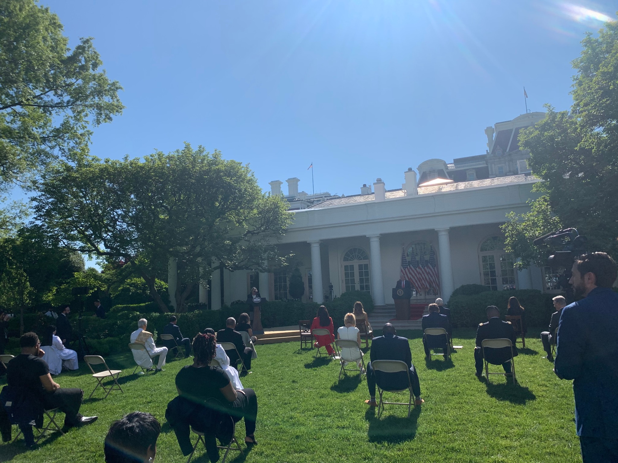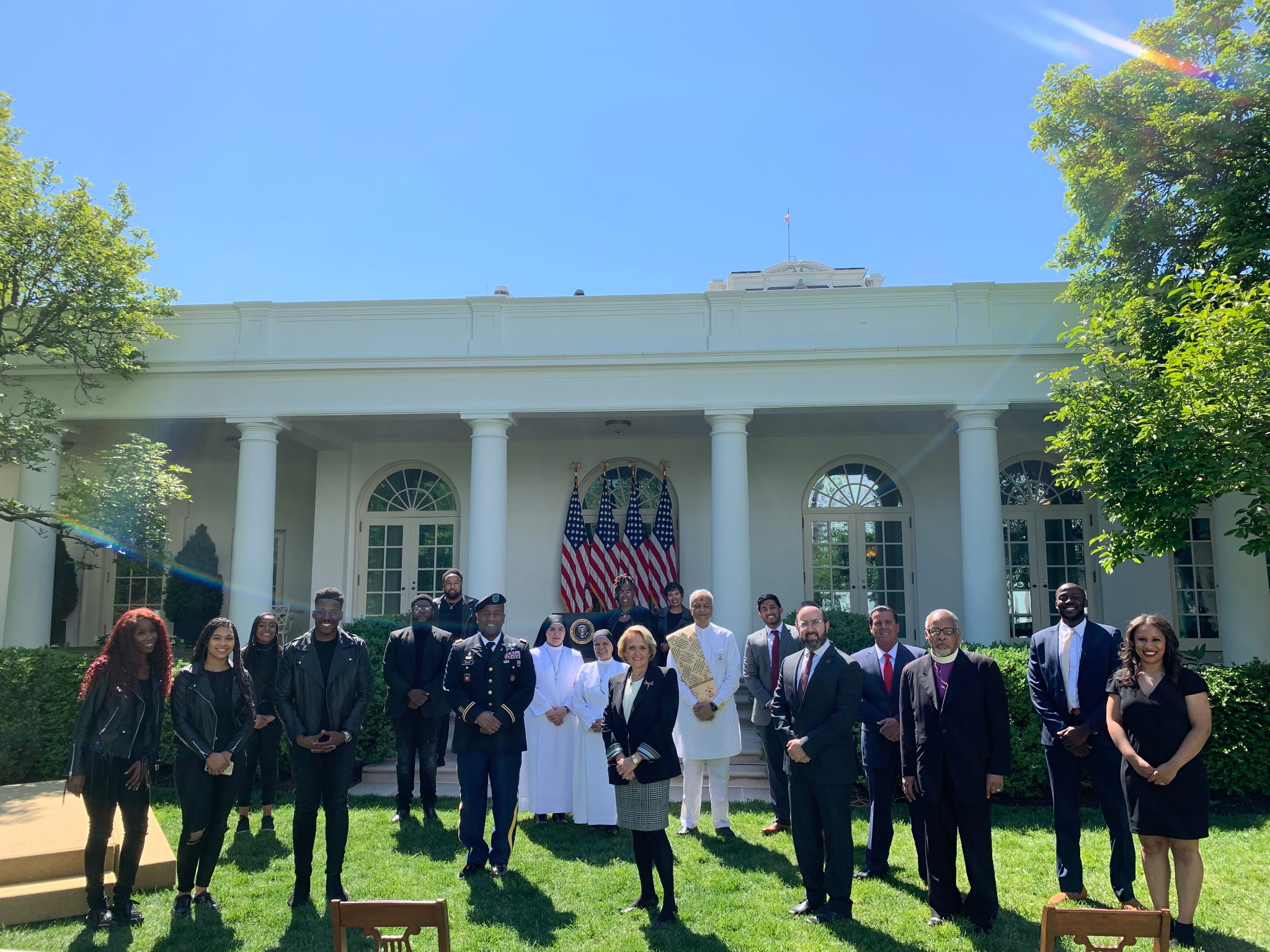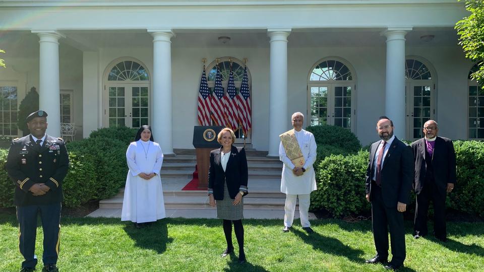 During the afternoon ceremony, the president said he was “profoundly grateful to be joined by many faith leaders who are helping to care for our neighbors in their hour of need. Thank you all for providing meals to families, medical supplies to hospitals, and for providing spiritual strength and encouragement to your communities.”