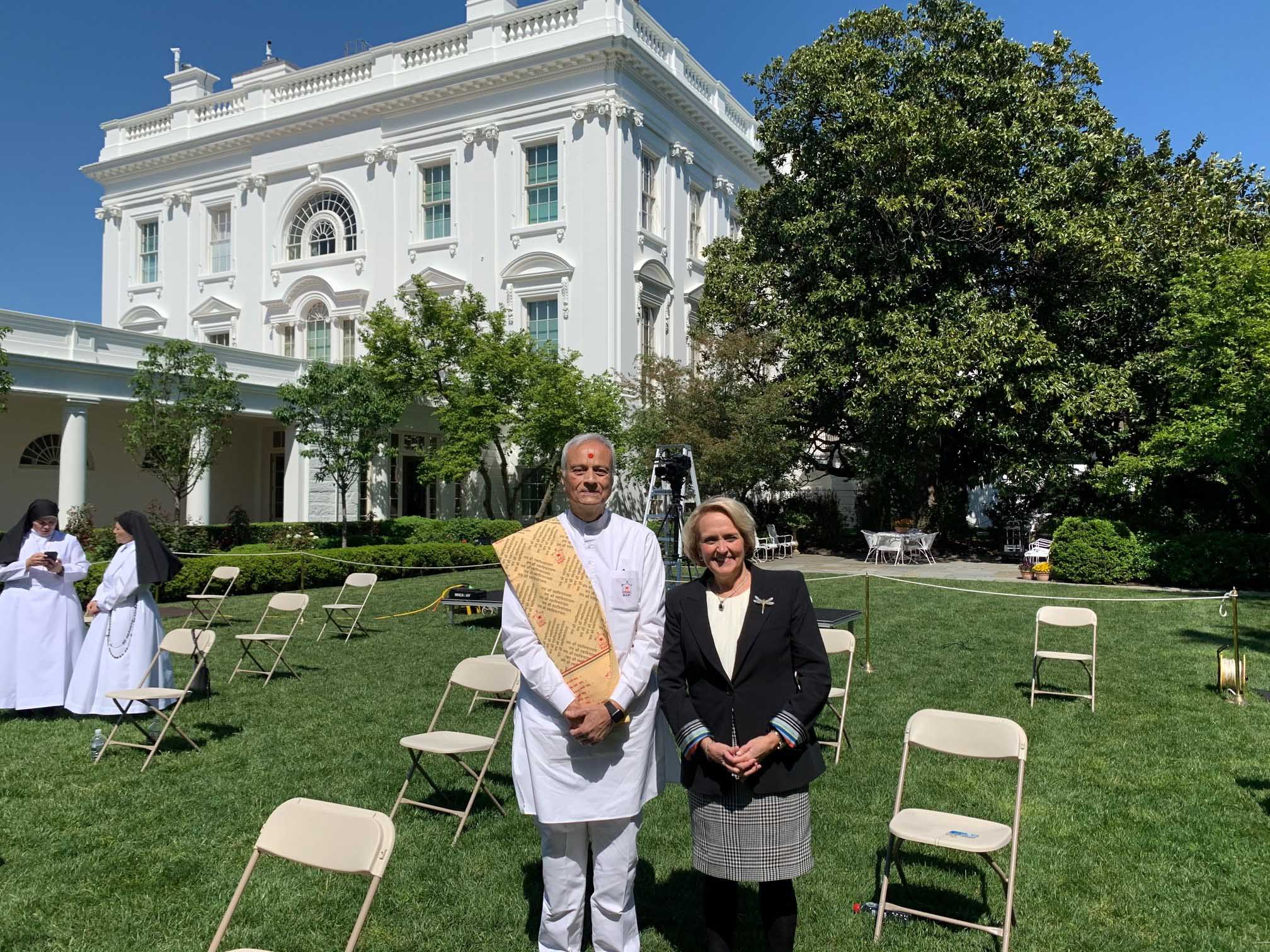 She was joined at the White House by Pastor Brittany Akinsola, a nurse at Samaritan’s Purse; Sister Eneyda Martinez from Poor Sisters of St. Joseph; Pujari Harish Brahmbhatt from B.A.P.S. Shri Swaminarayan Mandir in Robbinsville, New Jersey; Bishop Dwight Green, a member of the Board of Bishops of the Church of God in Christ; U.S. Army Chaplain Ibraheem A. Raheem from Walter Reed National Military Medical Center; and Rabbi Ariel Sadwin, executive director of the Agudath Israel of Maryland — Mid-Atlantic Region.