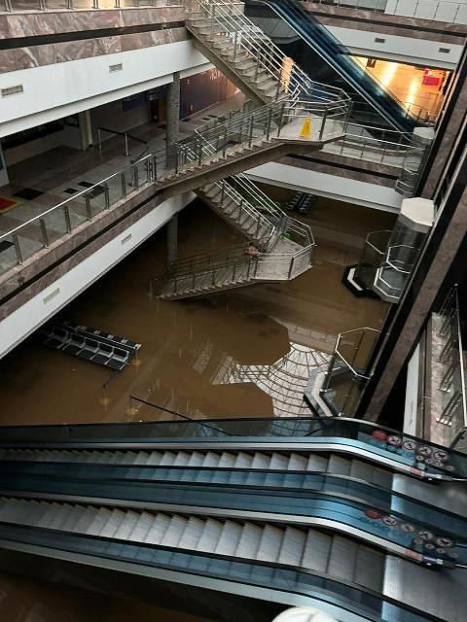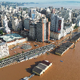 Aerial view of the Center of Porto Alegre, capital of Rio Grande do Sul after the overflow of the Guaiba River on May 5, 2024, in Porto Alegre, Brazil. Rains have struck heavily Brazilian state of Rio Grande do Sul causing damage in the infrastructure and displacing more than 20,000 people. Authorities report over 30 fatalities and expect the death toll to increase while dozens of people are still missing. Photo by Ramiro Sanchez/Getty Images.All rights reserved.News reports say some 80% of the population is without running water right now, a week into the flooding. Many also do not have telephone or internet services.