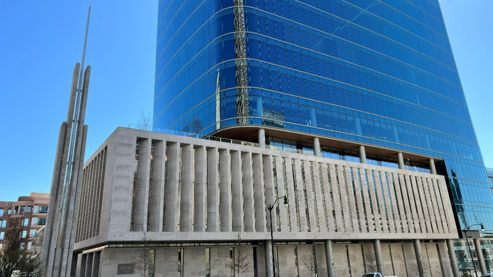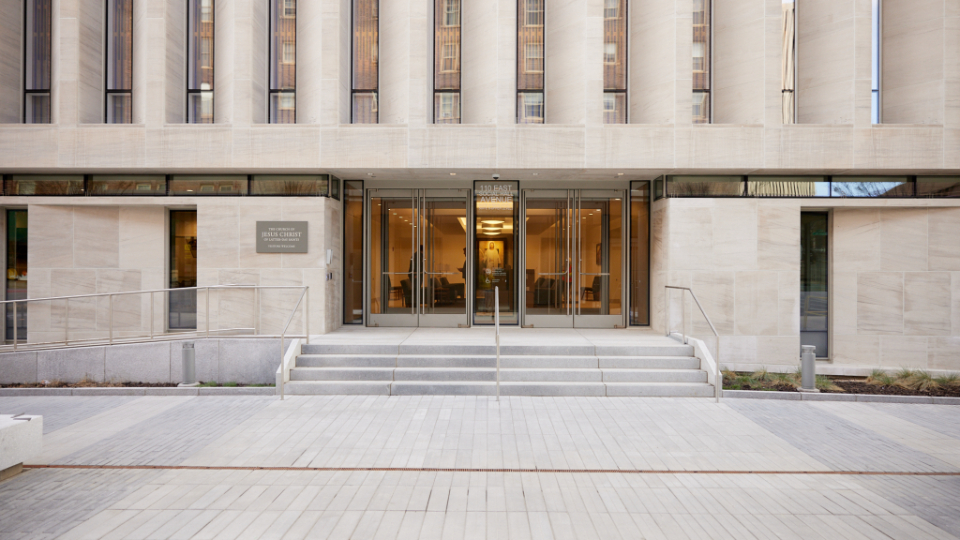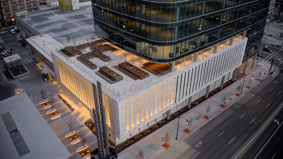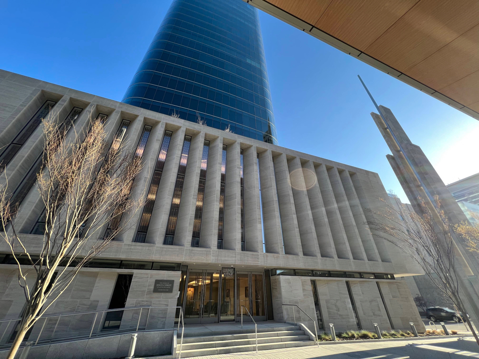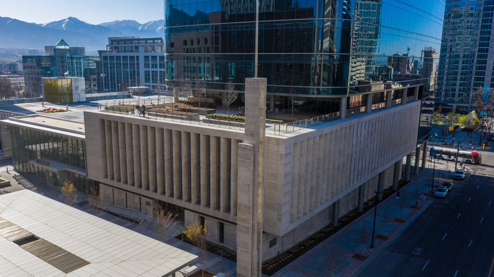 A new building is ready to open its doors in downtown Salt Lake City. Located just a block from Temple Square, this unique structure will serve as a meetinghouse for Latter-day Saints and as a commercial office tower.
