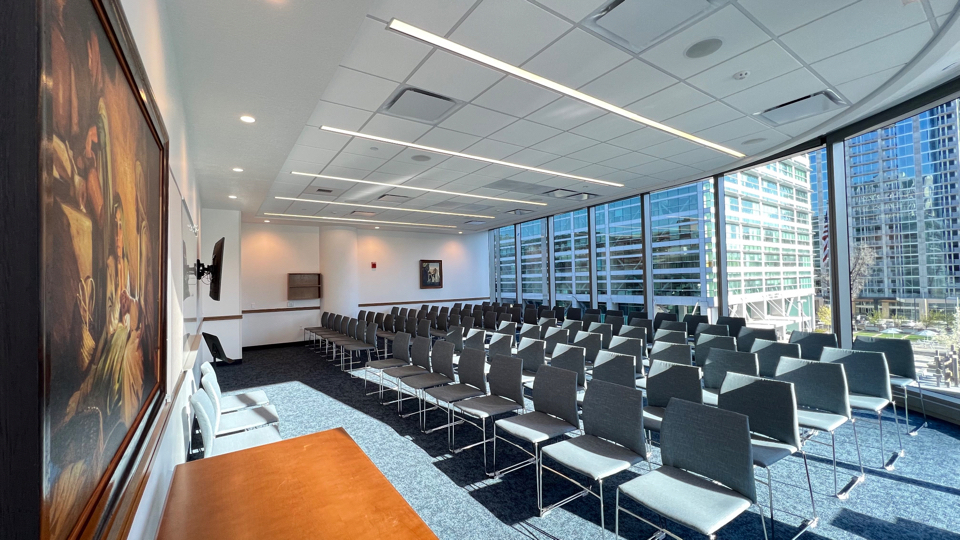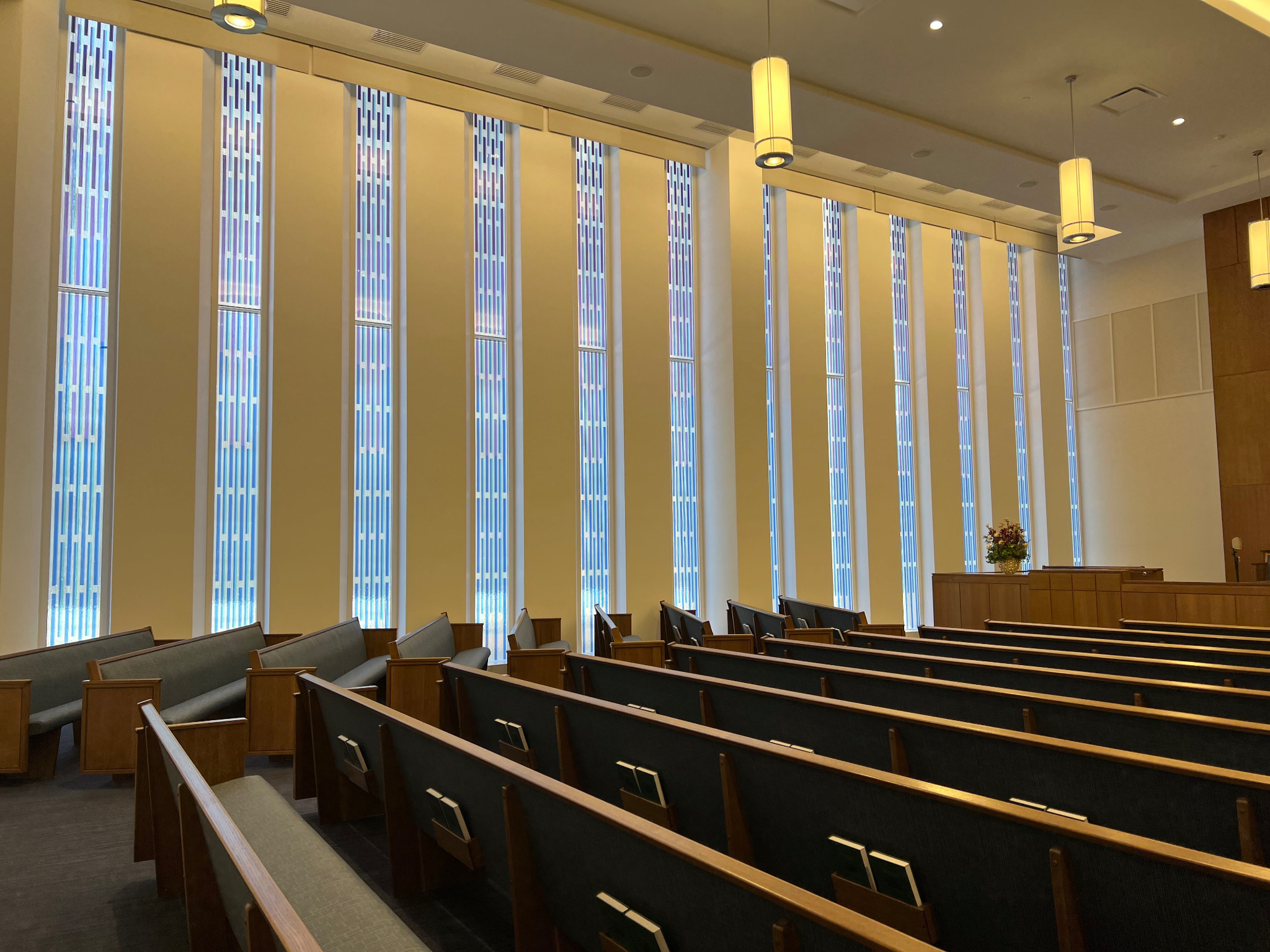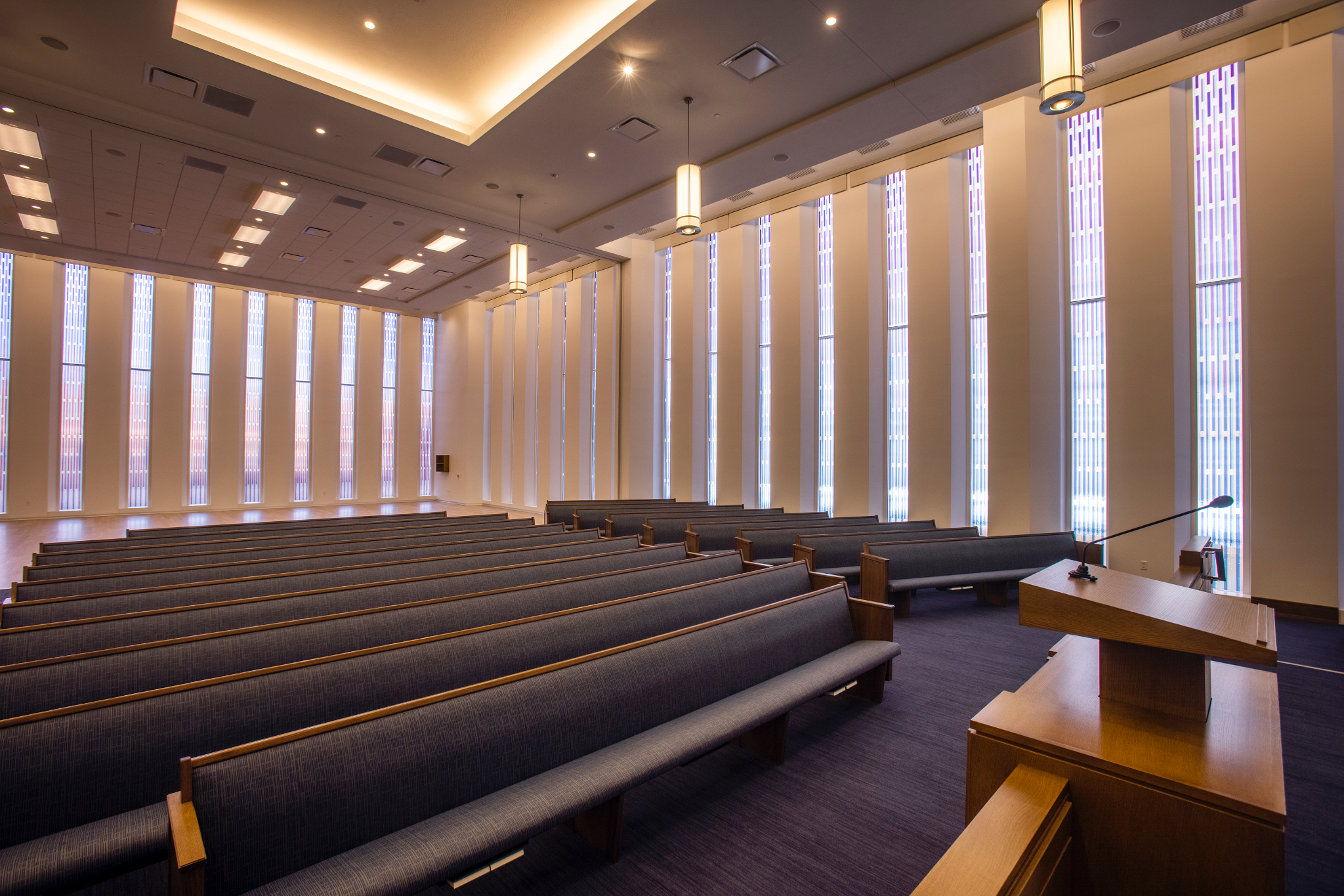 The new meetinghouse has two chapels, so it can host two congregations at the same time, each with a capacity of 500 people. Six wards (congregations) will gather in the building, including two for young single adults. The meetinghouse was built to accommodate a growing number of residential complexes in the downtown area and promote a more walkable community.