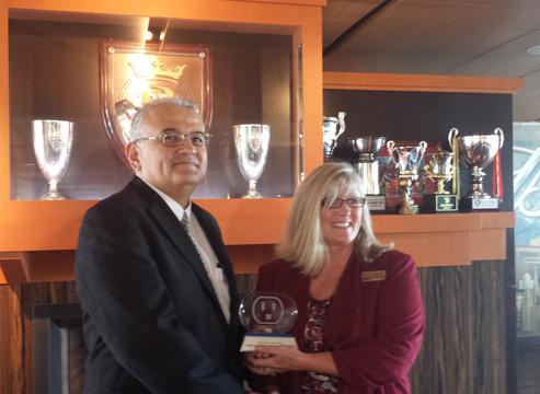 Rocky Mountain Power President and CEO Cindy A. Crane, right, presents the wattsmart® Business Partner of the Year award to Terry Cano, Terry Cano, director of architecture, engineering and construction for the Church.