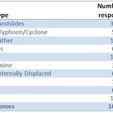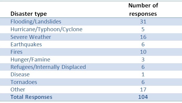 The following table shows the breakdown of the 2012 responses by disaster type: