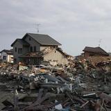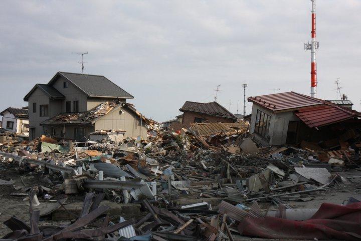 - Houses stand in heaps of rubble after being ripped from their foundations in the powerful tsunami near Ishinomaki, Japan.