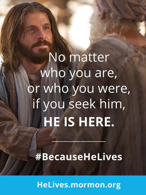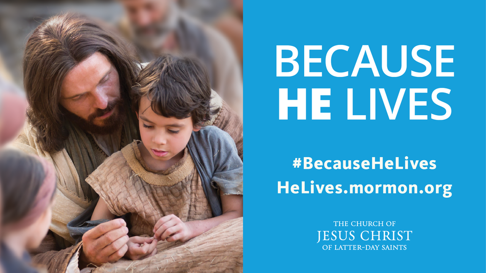 “Because He Lives” content will be posted daily on Mormon.org social media pages (Facebook, Twitter and Google+) from Saturday, March 28, through Easter Sunday, April 5. Social media content will provide examples of the blessings available to us in our daily lives. Those who share online content are encouraged to use the hashtag #BecauseHeLives on their social media channels. Those inspiring messages will be available to share throughout the year.