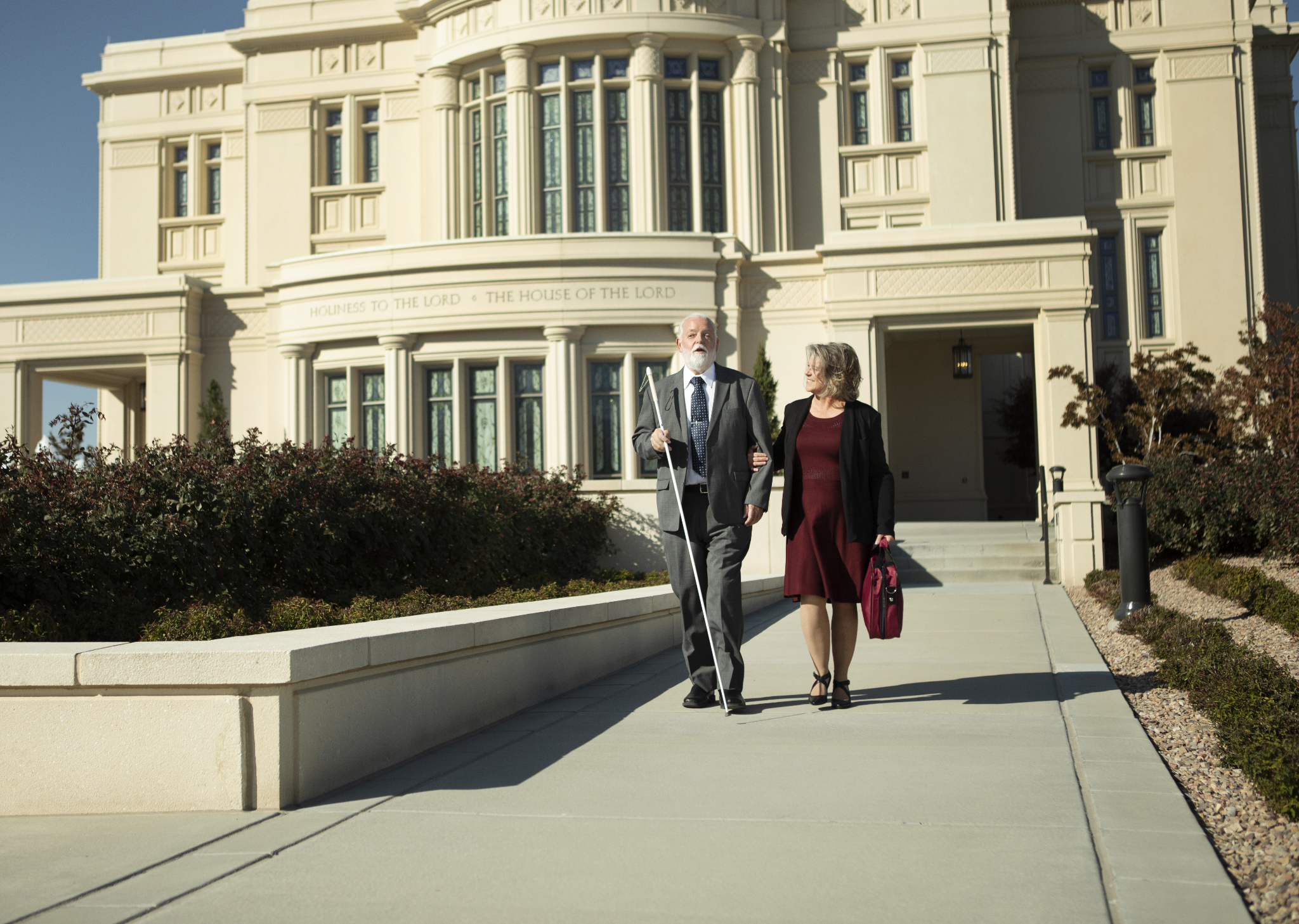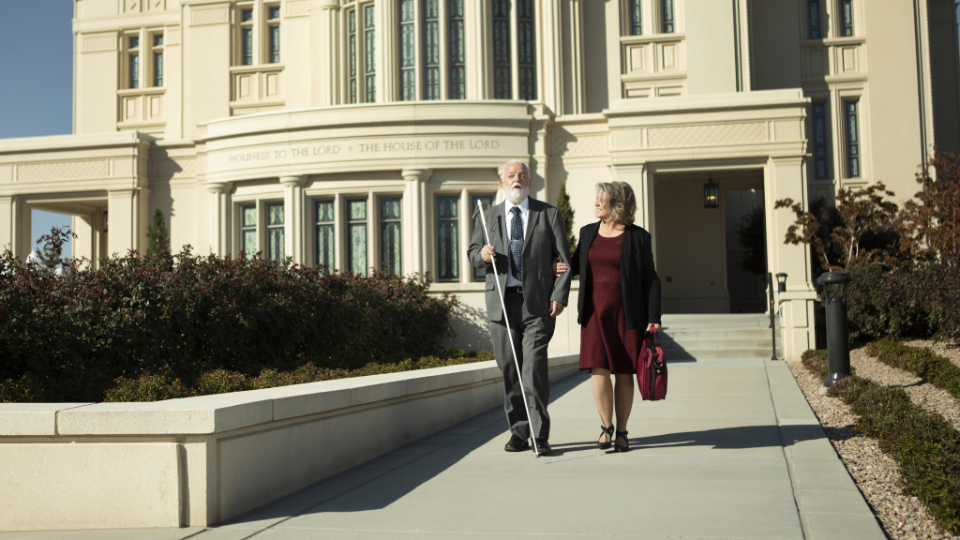 A blind man walks holding a walking stick walks out of the temple with his wife holding his arm2021 by Intellectual Reserve, Inc. All rights reserved.Katie Steed, disability specialist manager for the Church, said the Disabilities.ChurchofJesushrist.org website helps the Church accomplish its vision, which is to “help members with disabilities and their families belong, contribute and progress.” Instead of focusing on the needs of most Church members, Steed said she and her team put all their efforts into addressing the needs of “the one.” This means addressing the needs of more individuals than people might think, she explained.