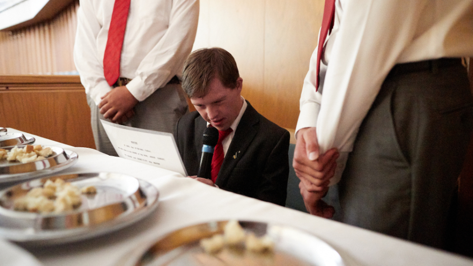 A young man with special needs blesses the sacrament.© 2021 by Intellectual Reserve, Inc. All rights reserved.“We try not to make assumptions on what people would want,” Steed said. “It all goes back to a common motto in the field of disabilities, ‘Nothing About Us Without Us.’ We want to elevate their voices. So, we will look at the research, and then we will talk with our members to be certain we are truly listening to and meeting their needs.”