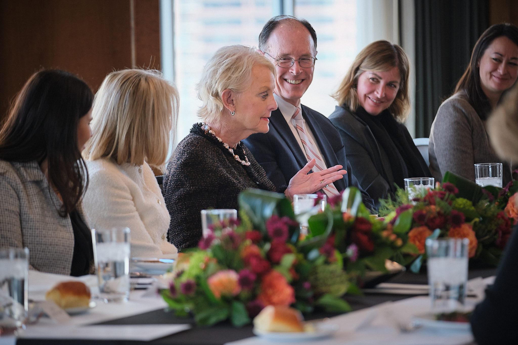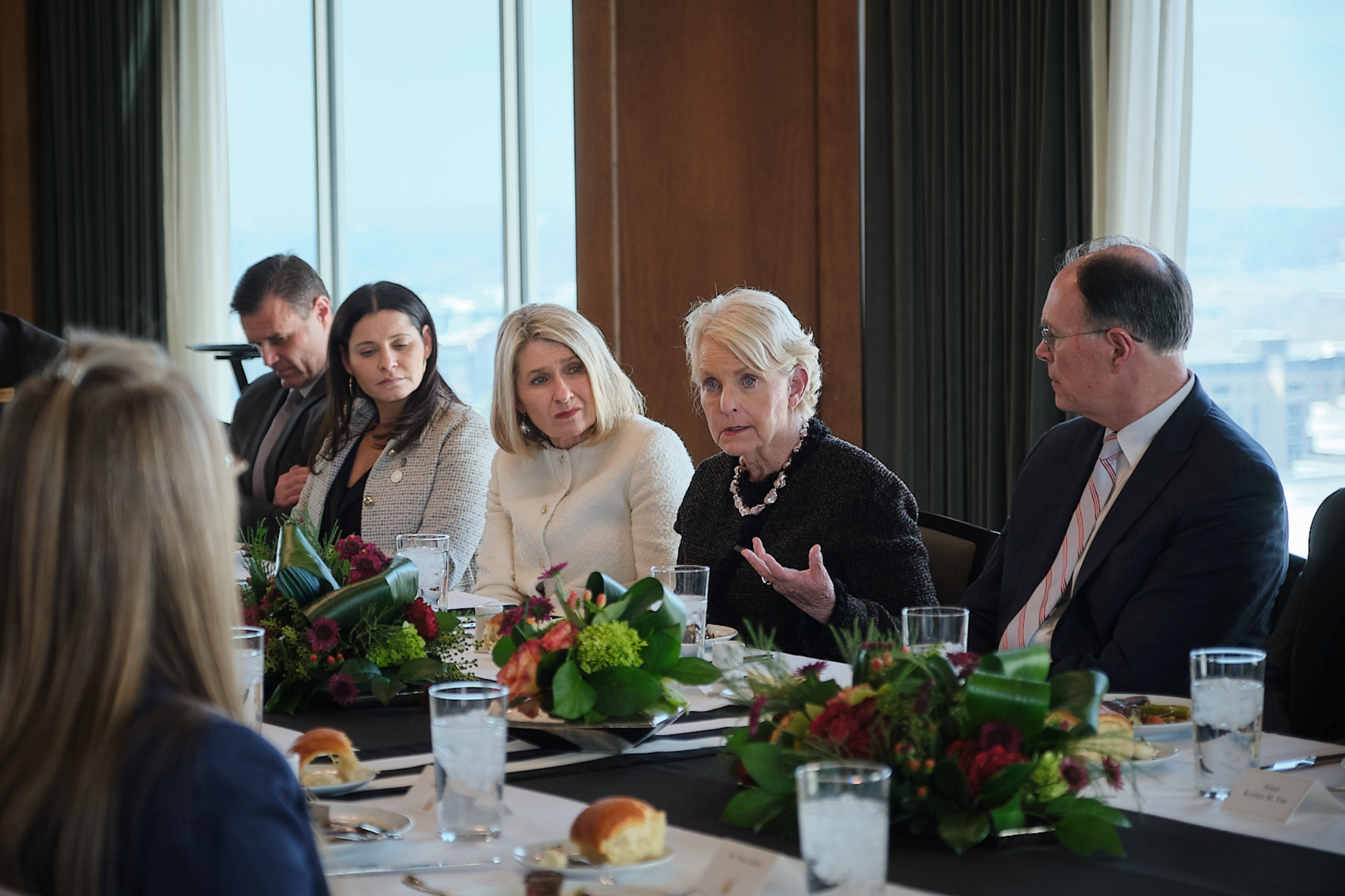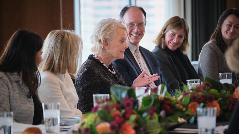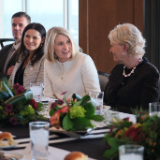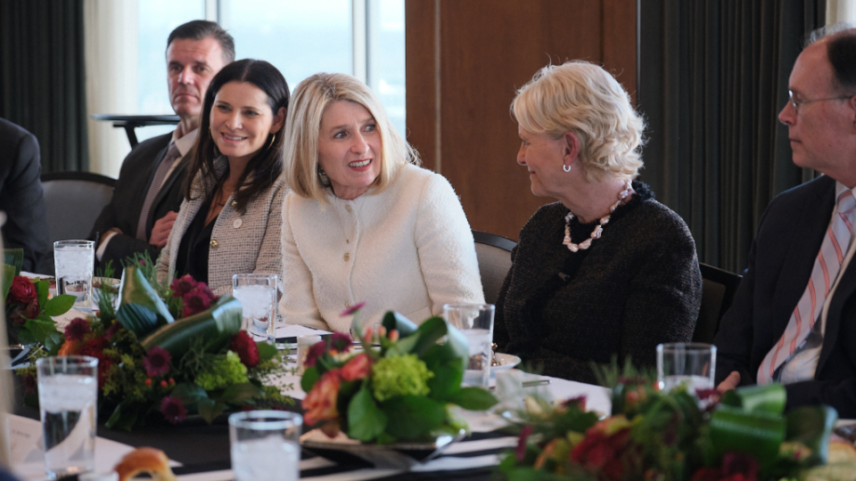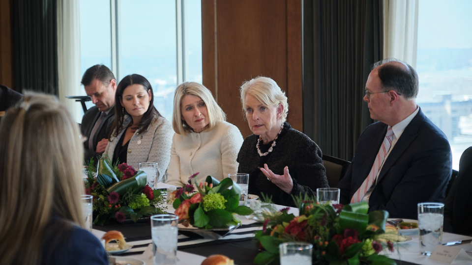 After touring Welfare Square and the Bishops’ Central Storehouse, McCain and her WFP colleagues sat down to lunch at the Joseph Smith Memorial Building with the Presiding Bishopric and the Relief Society General Presidency.