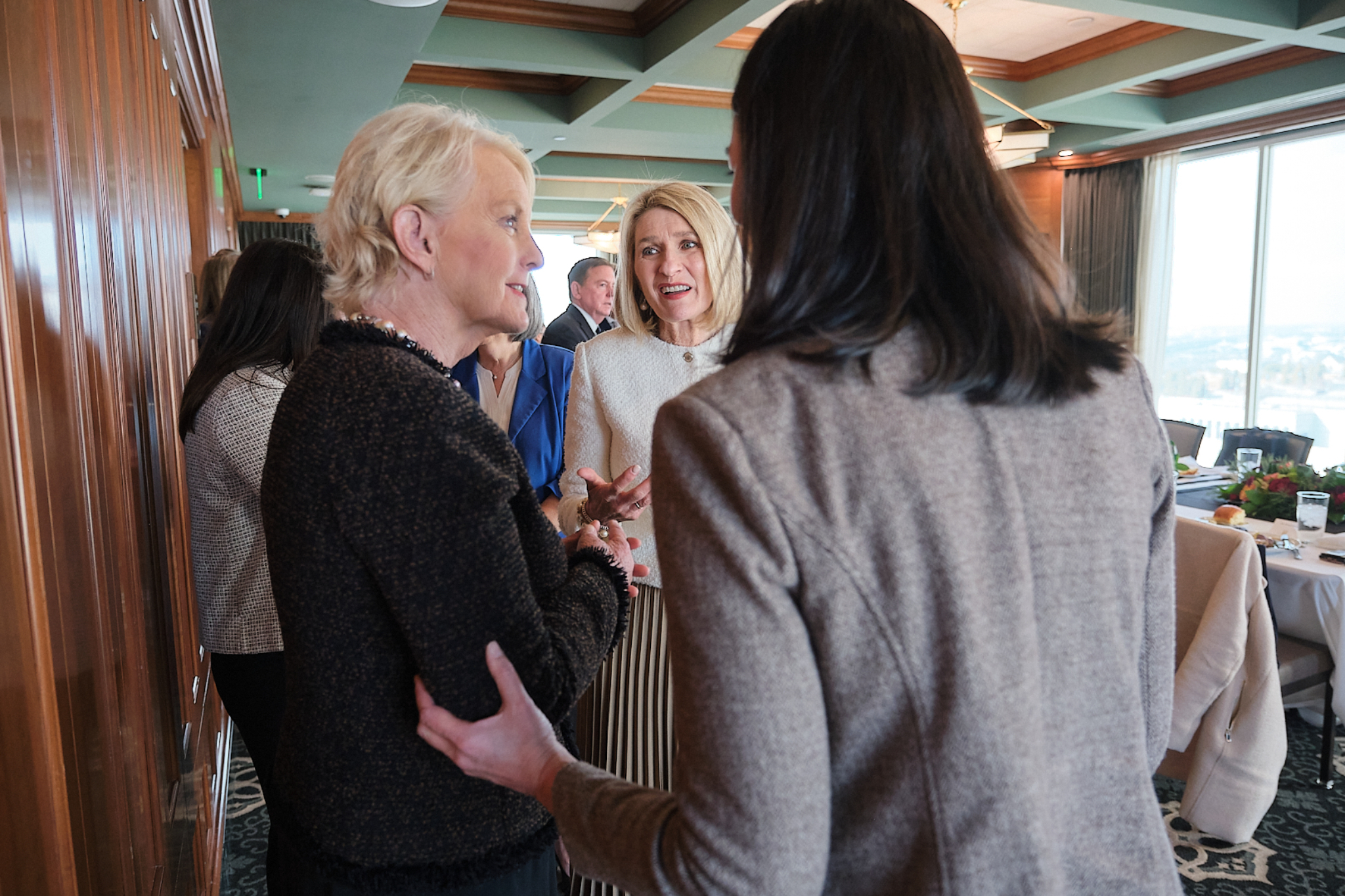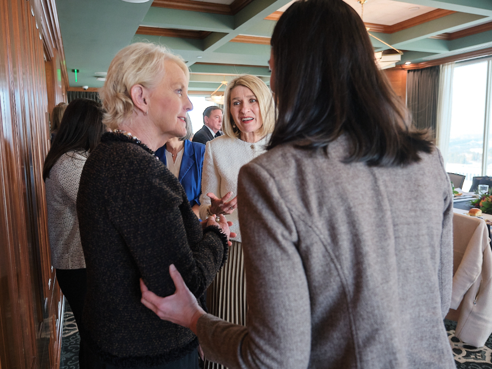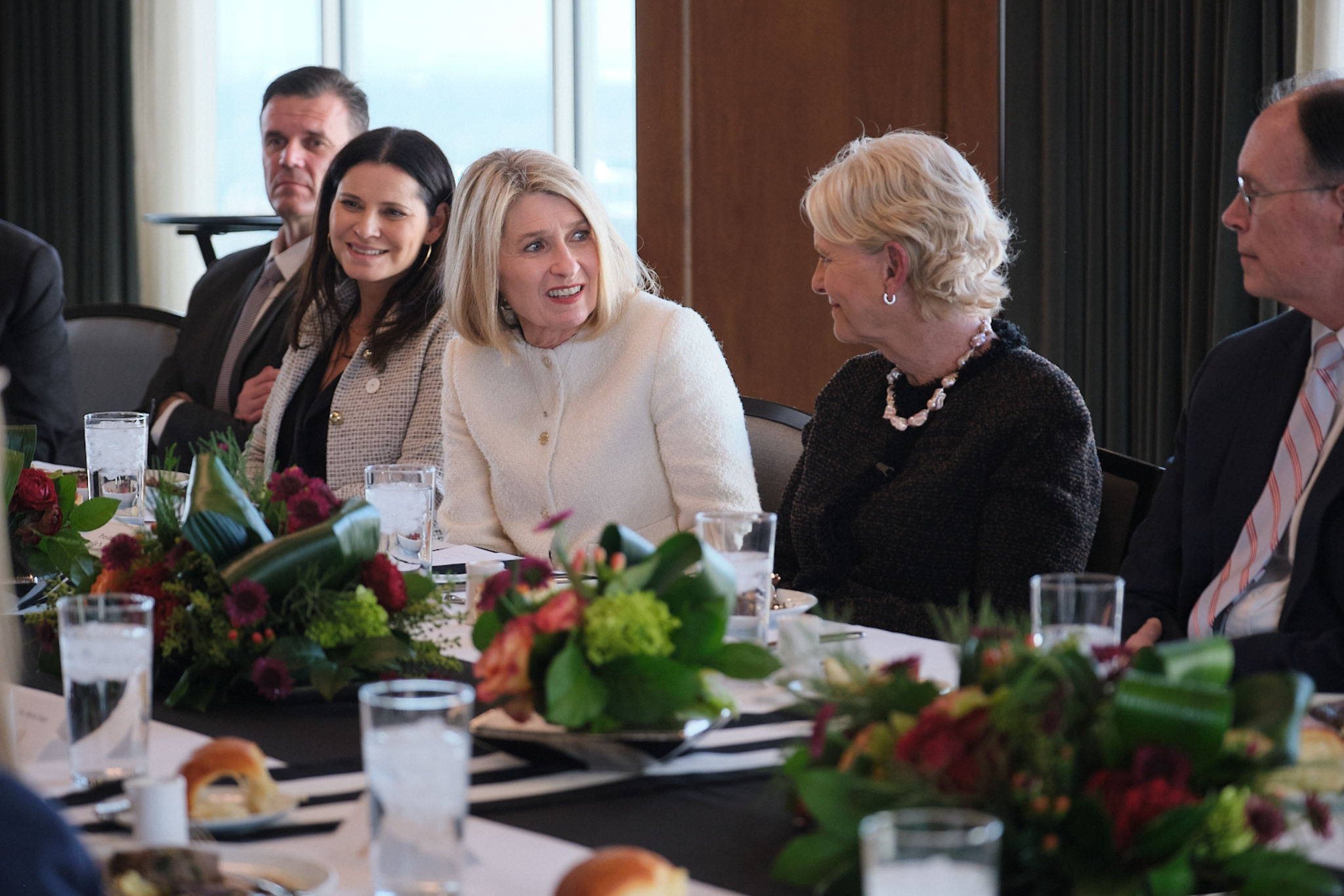After touring Welfare Square and the Bishops’ Central Storehouse, McCain and her WFP colleagues sat down to lunch at the Joseph Smith Memorial Building with the Presiding Bishopric and the Relief Society General Presidency.