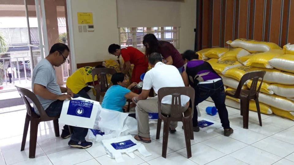 LDS Charities, the humanitarian arm of the Church, is coordinating relief efforts alongside Church volunteers who are repacking supplies and distributing 7,000 food kits in the affected Philippine provinces.