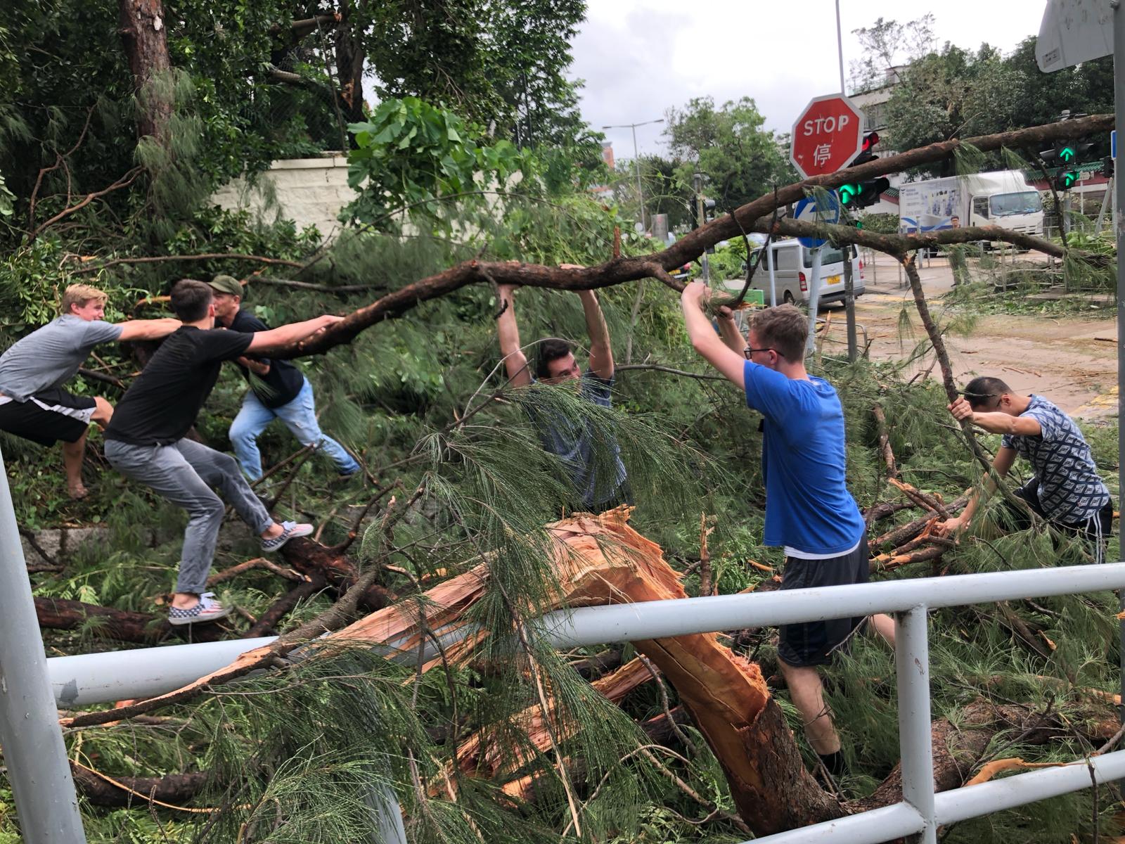 In Hong Kong, members and more than 100 missionaries from The Church of Jesus Christ of Latter-day Saints have been working to help clean debris in the community. High wind smashed windows in the city, tearing off parts of buildings and roofs, while the storm surge flooded hotels and restaurants. Eight meetinghouses received minor flooding along with landscape damage. The Hong Kong China Temple received minor landscape damage but has reopened. Miraculously no lives were lost though a few hundred were injured and some were displaced.