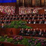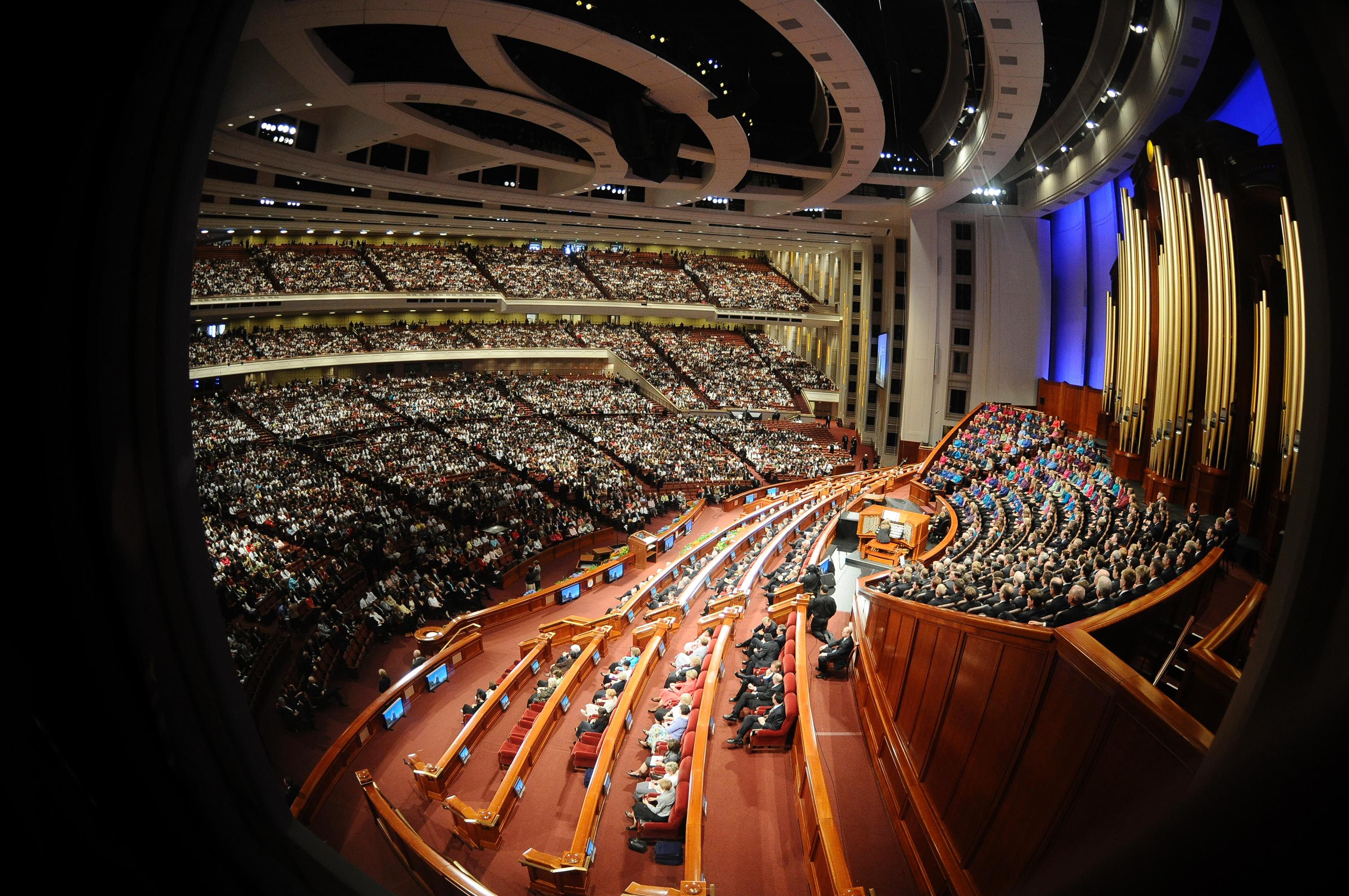 - Conference visitors during the Saturday morning session of the 182nd Semiannual General Conference