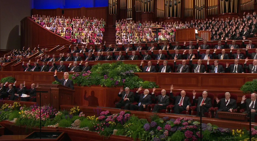 A meeting held periodically to conduct the business of the Church, to confirm the appointment of officers and to instruct and encourage Church members. Conferences may be held at ward, stake, regional or global (general) levels. The Church conducts two general conferences annually, in April and October. These are for the benefit of the entire Church membership and are led by the First Presidency of the Church.