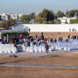 Under a clear sky and a warm winter sun, dozens of people gathered in the large area where the two-story temple of approximately 2,500 square meters will be built. The temple, which will sit on 3.58 acres, will be located in the city of Santiago de Querétaro about 130 miles northwest of Mexico City. The Querétaro Temple was announced by Church President Russell M. Nelson in the April 2021 general conference.
