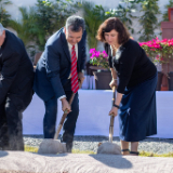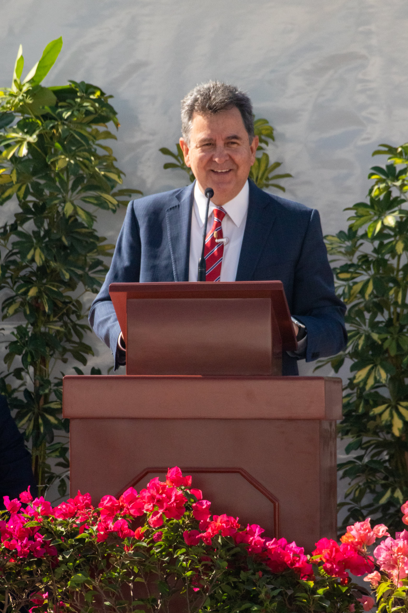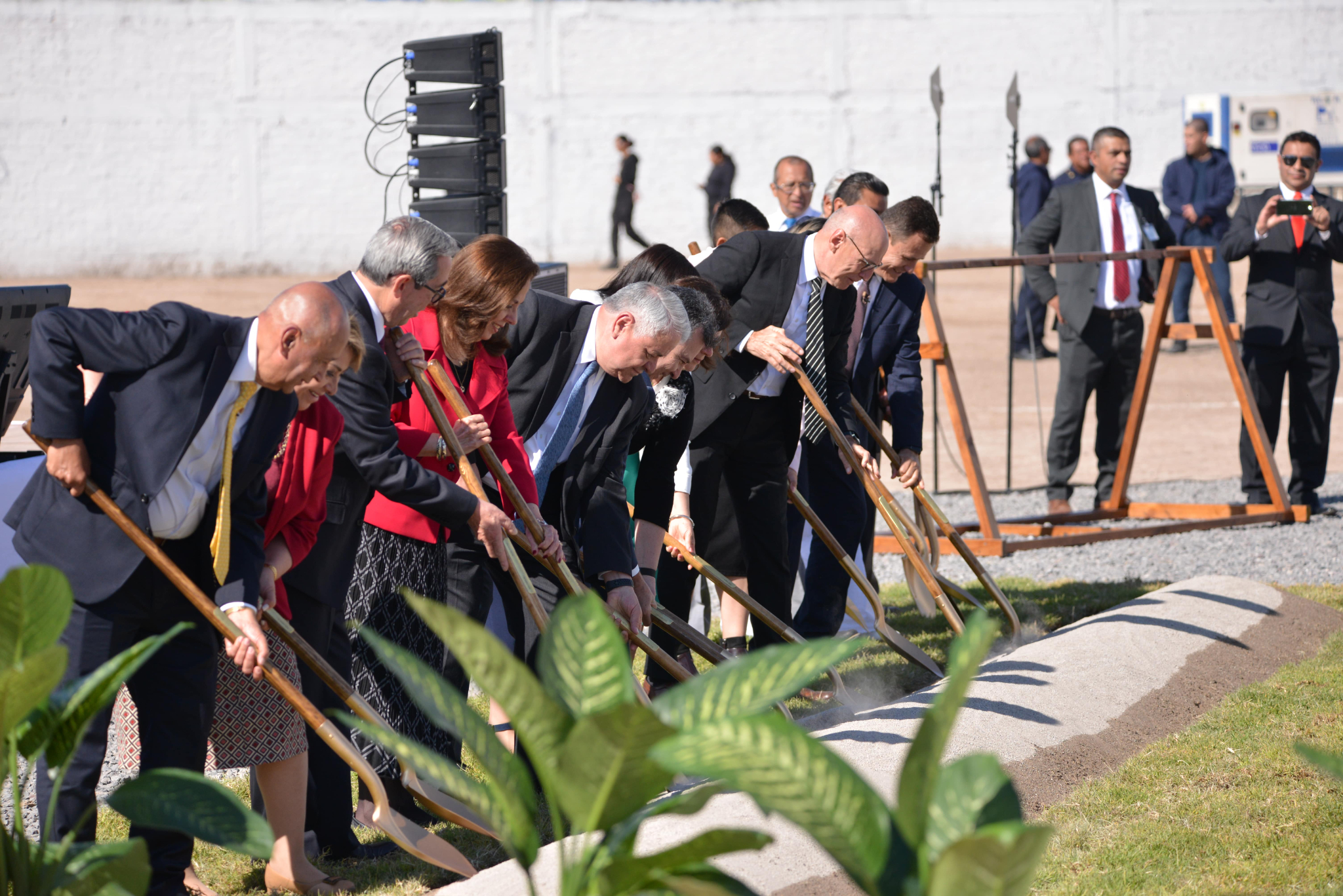 Elder Adrián Ochoa, General Authority Seventy and second counselor in the Mexico Area Presidency, presided over the groundbreaking ceremony. General Authority Seventies Elder Arnulfo Valenzuela and Elder Benjamín De Hoyos and their wives were also in attendance.