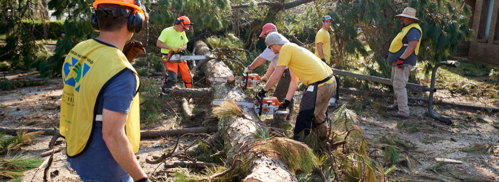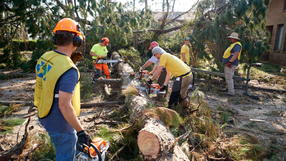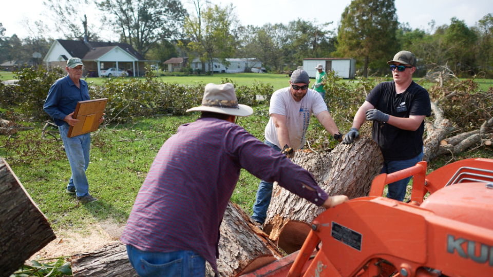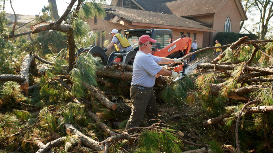 Quinn Millington, a regional Church leader, brought heavy equipment from Montgomery, Alabama. “It’s overwhelming when [residents] come back and they look at their house and there’s trees down and there’s no power and there’s standing water, and they’re wondering, ‘What has happened to my home?’” he said. “It’s nice that we can walk in and eliminate at least one or two of their concerns and offer some love acting like the Savior.”