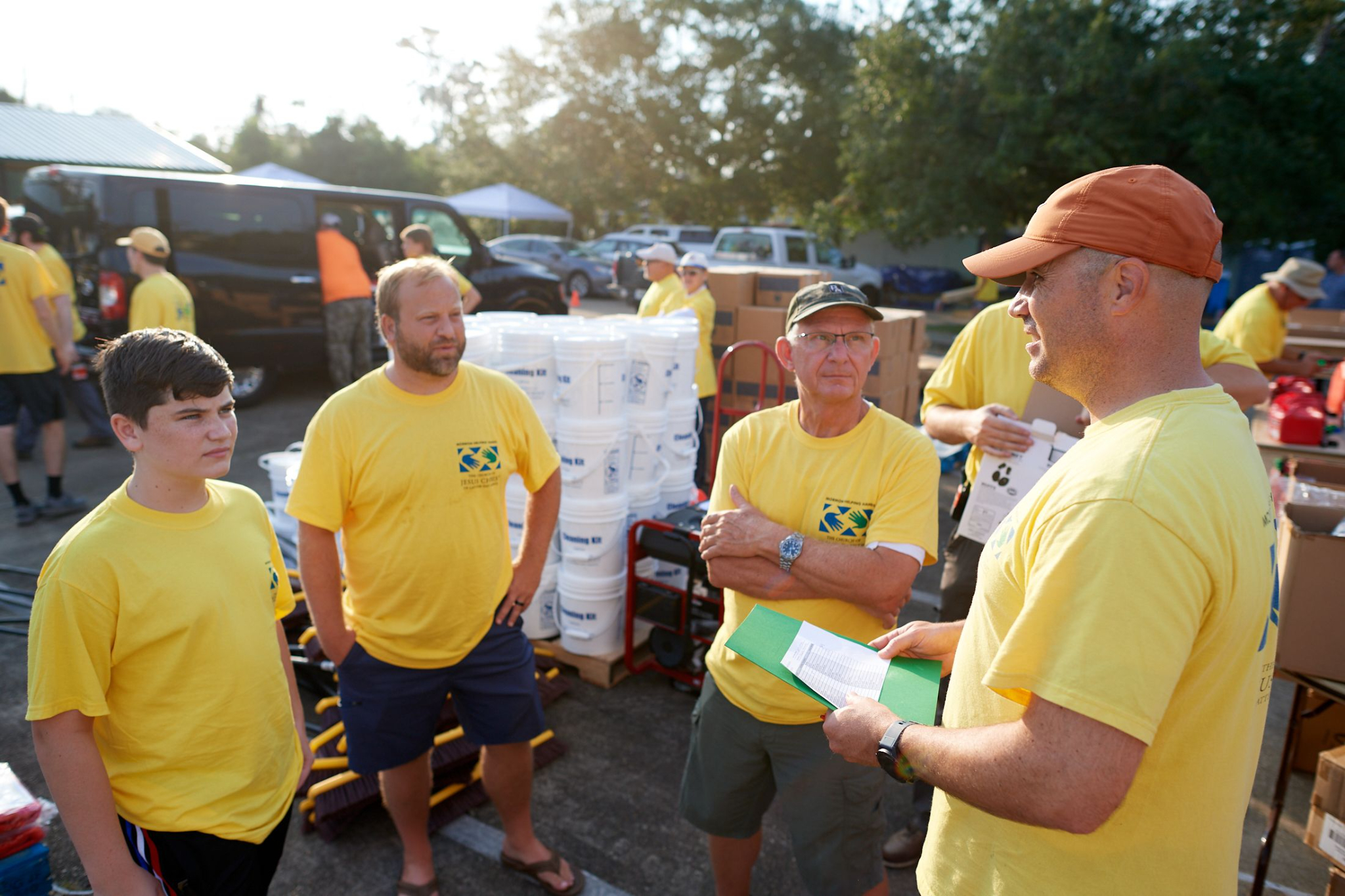 Within days, volunteers in yellow shirts brought in chain saws, rakes and track loaders to begin clearing the grounds of his church. Joining with their Methodist friends, many hands made quick work.
