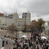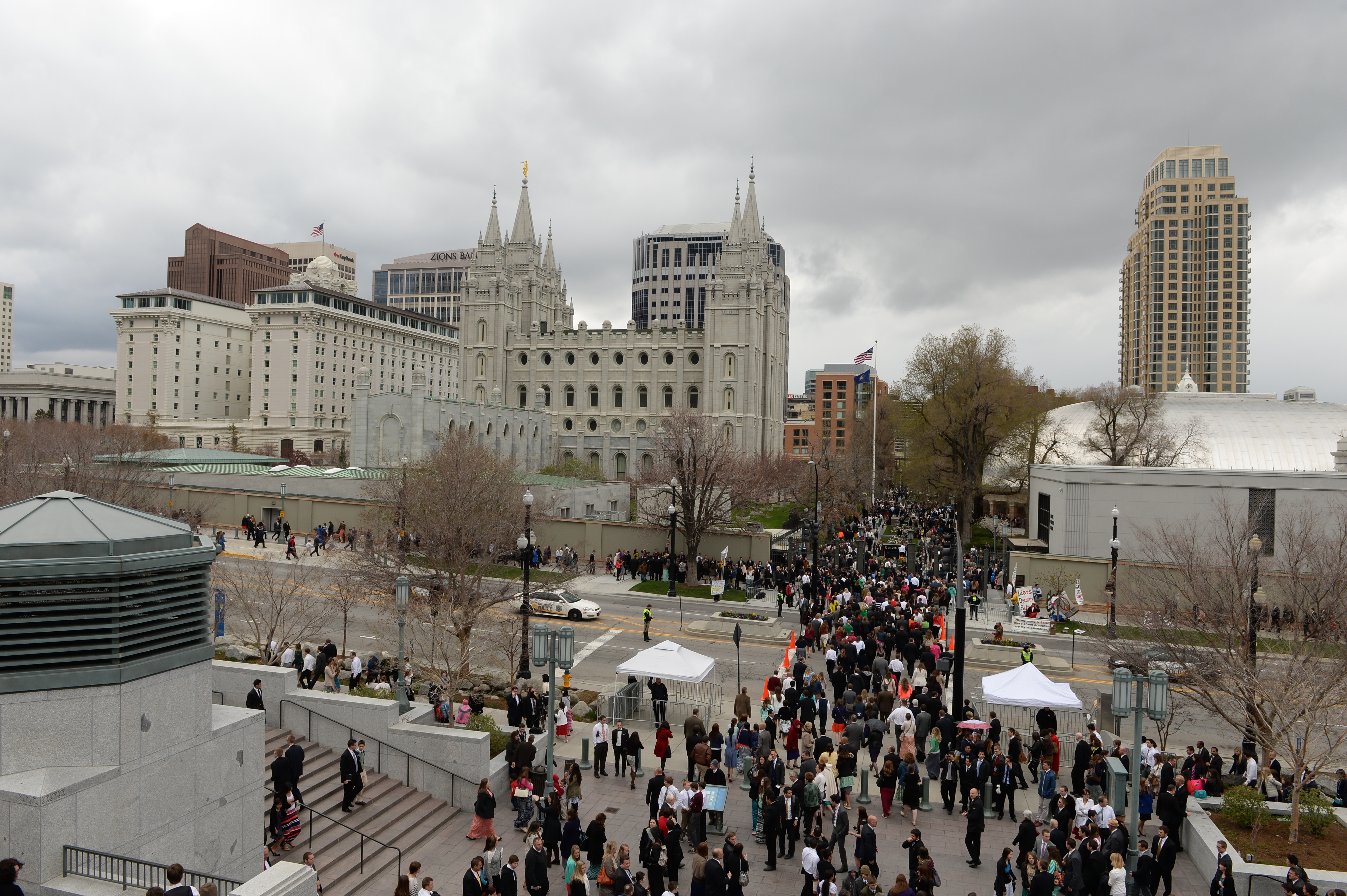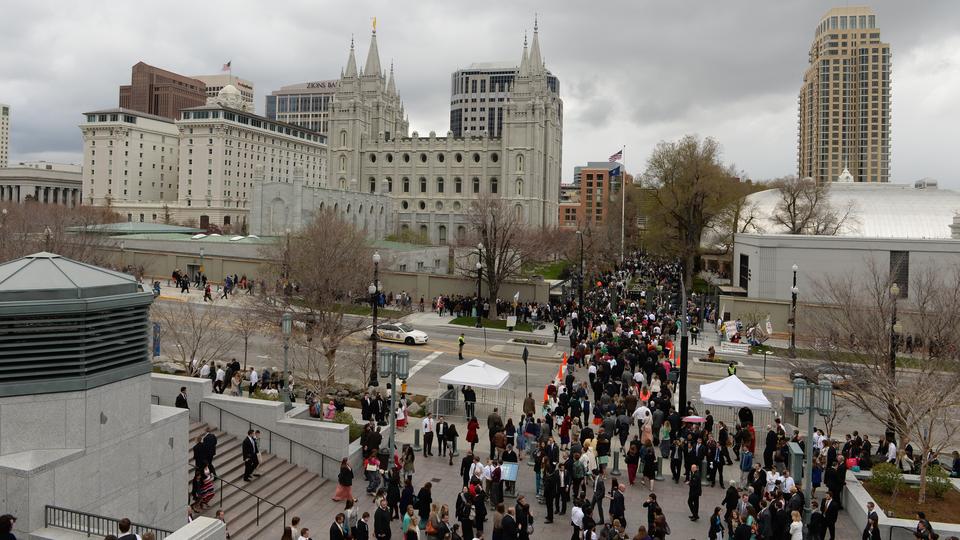 - Conference goers on Temple Square in Salt Lake City, Utah during conference weekend, 5 April 2014