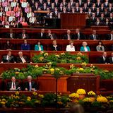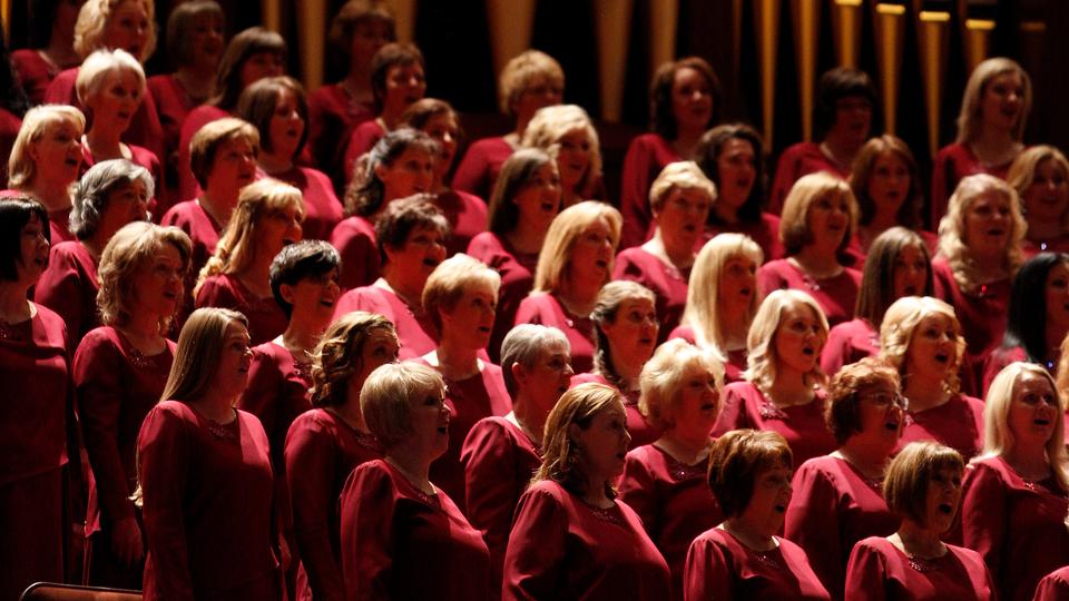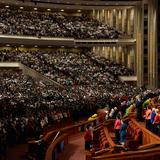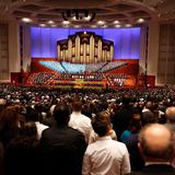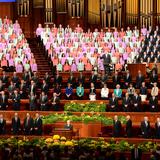 - Members of the Mormon Tabernacle Choir sing at the Saturday morning session of general conference, 5 April 2014