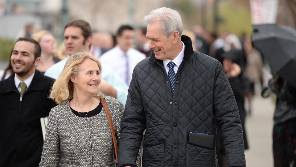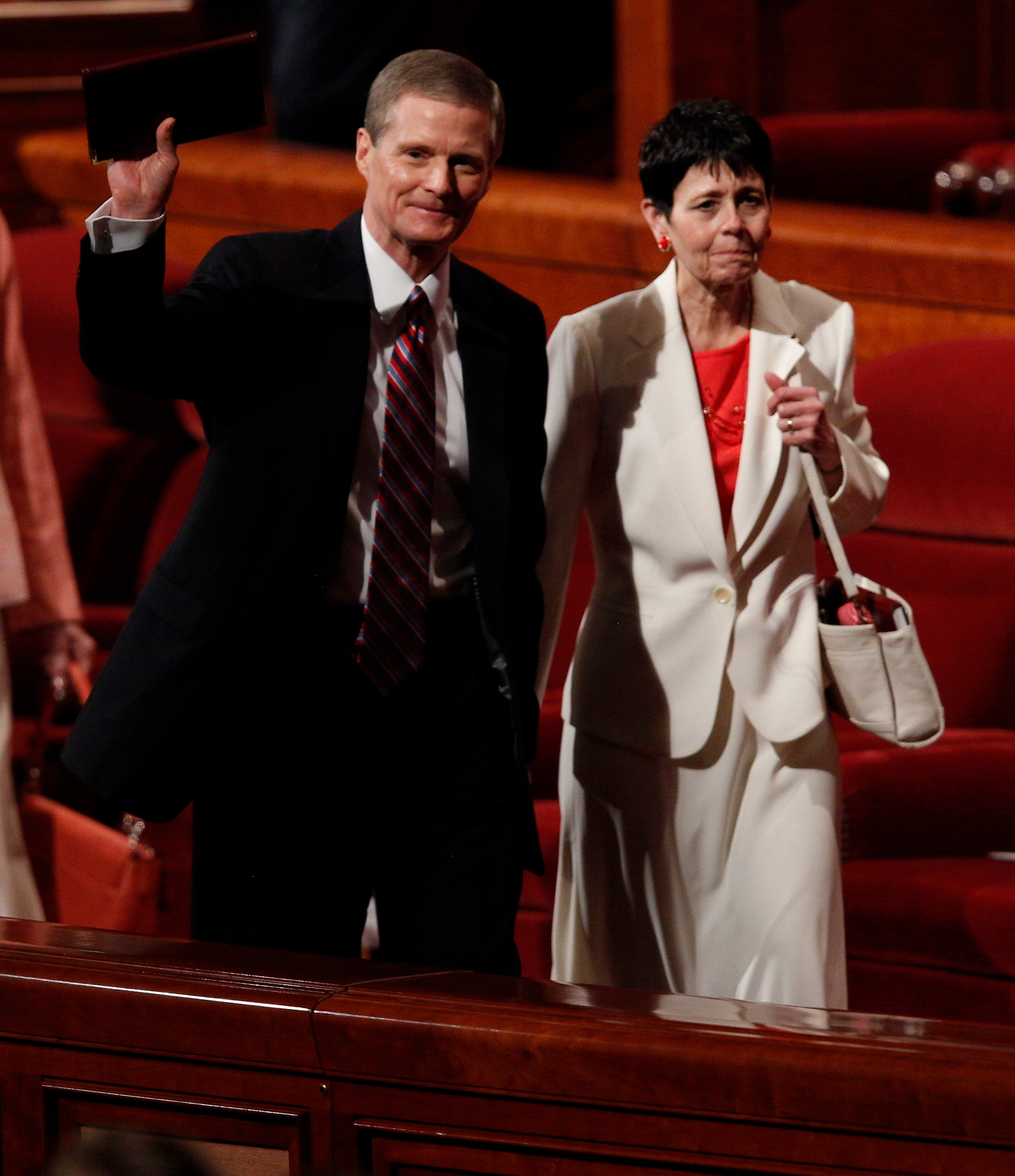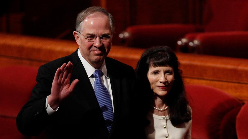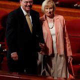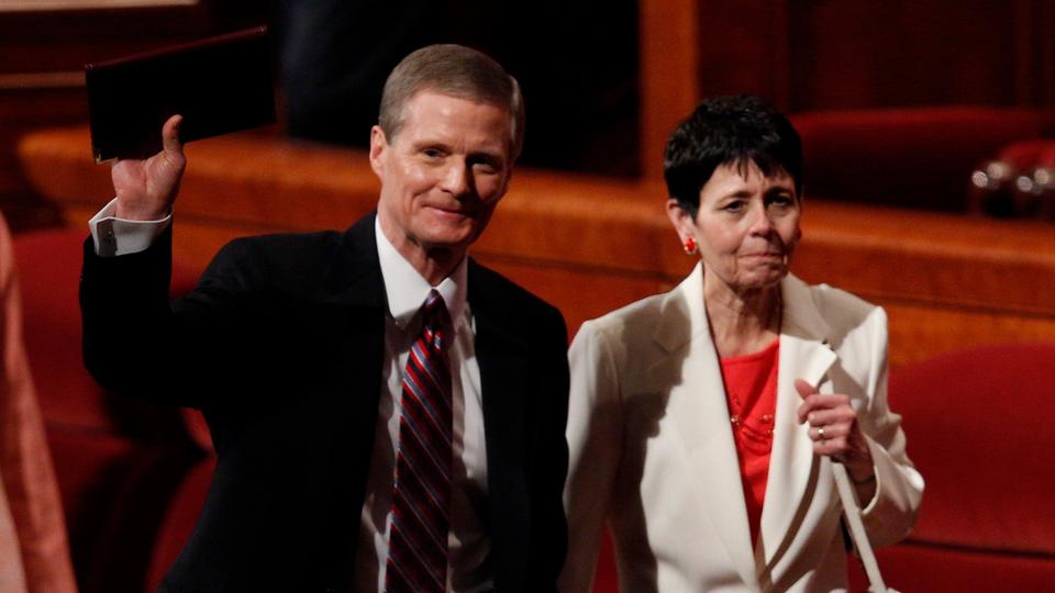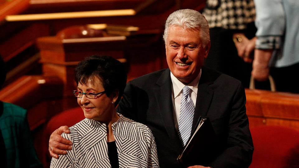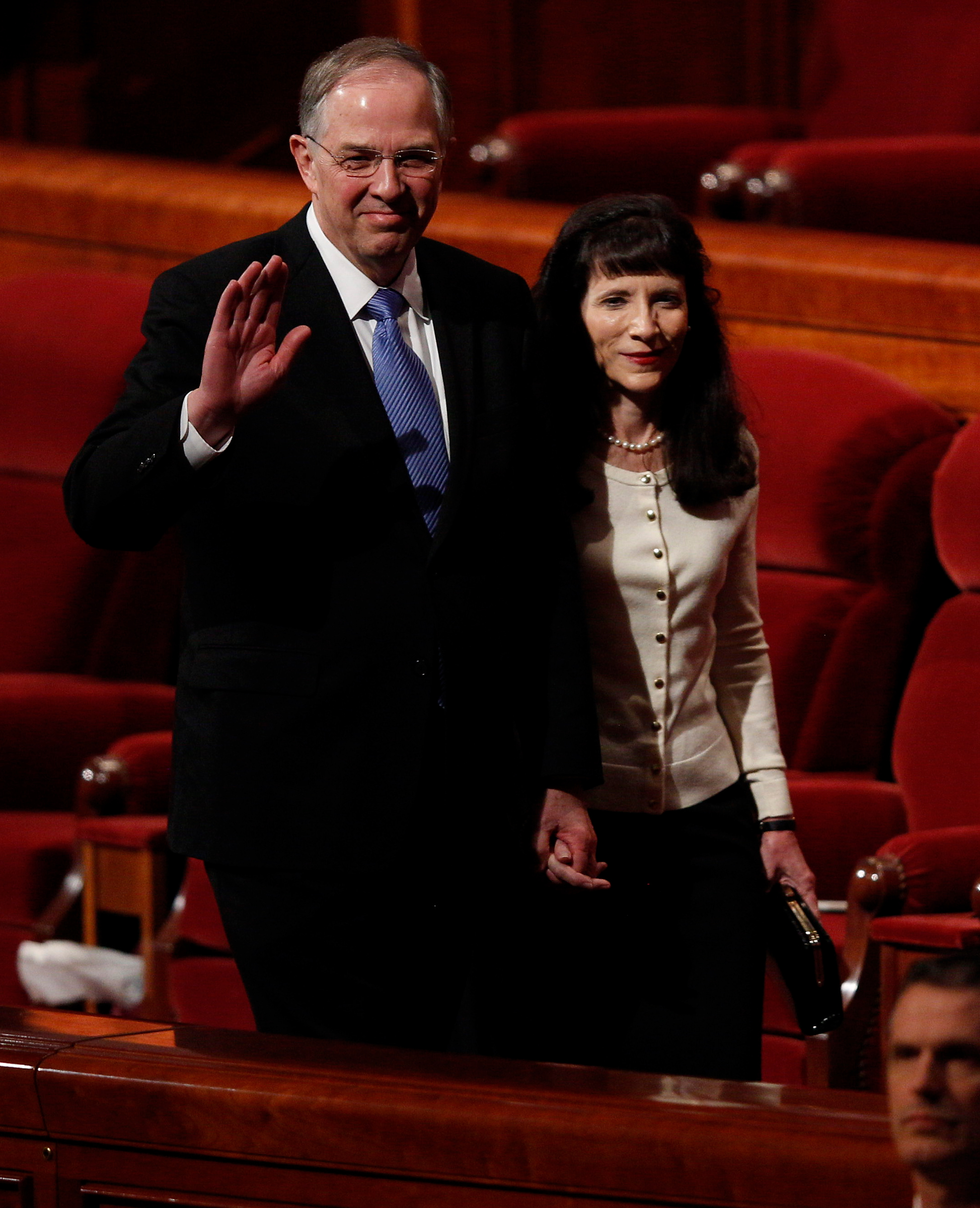 - Elder David A. Bednar of the Quorum of the Twelve Apostles and wife Susan leave the stand of the Conference Center in Salt Lake City, Utah following the Sunday morning session of general conference, 6 April 2014