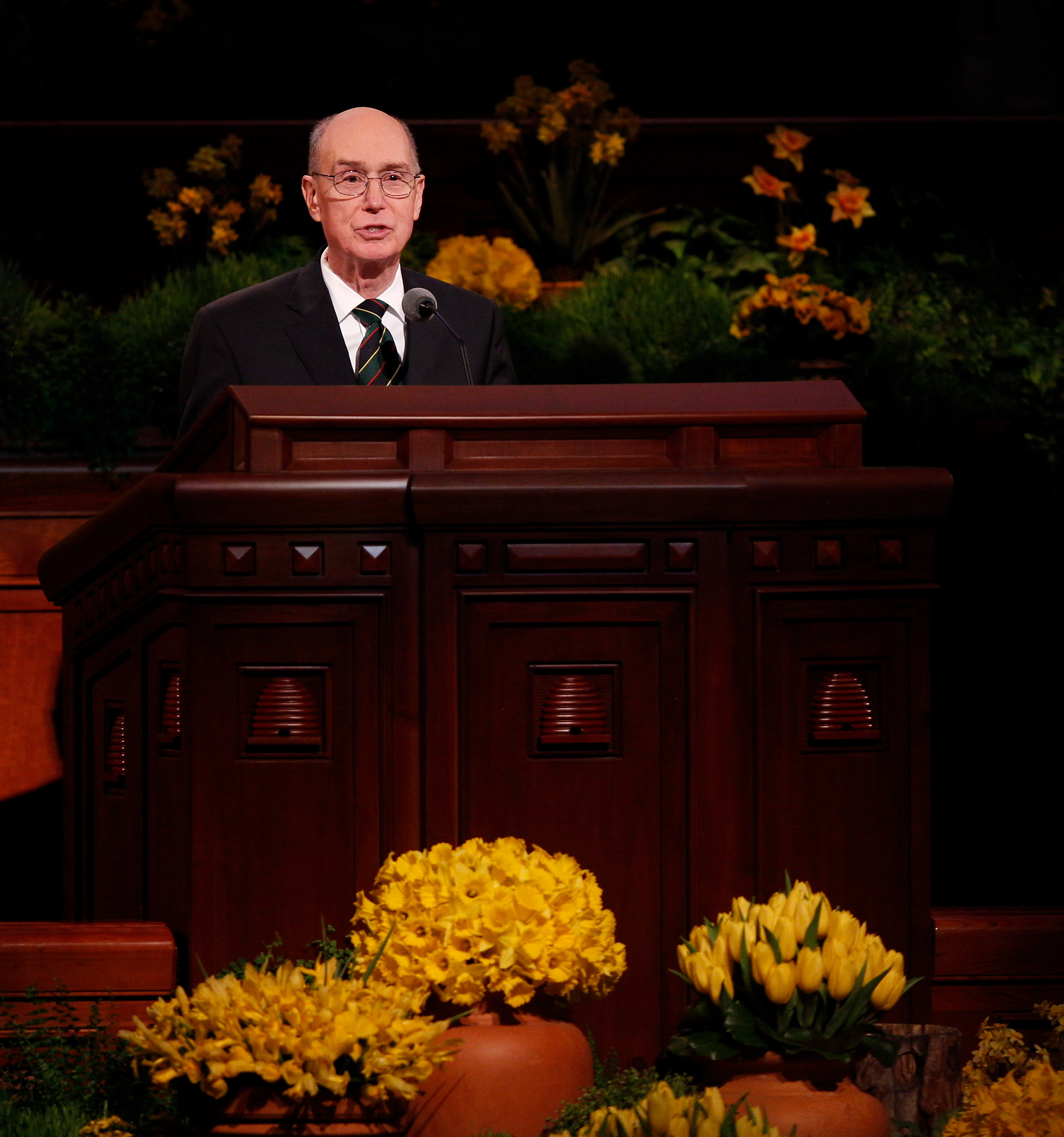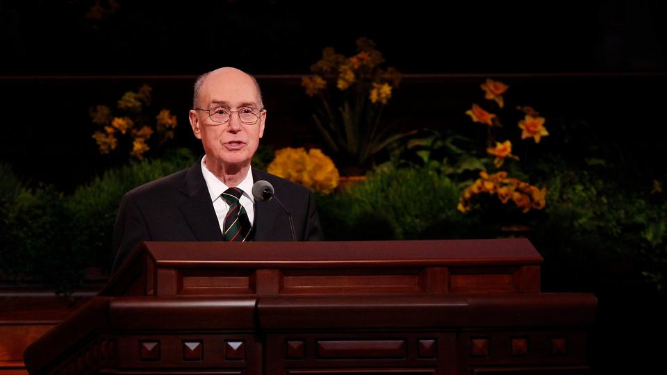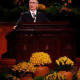 - President Henry B. Eyring of the First Presidency speaks at the Saturday morning session of general conference, 5 April 2014