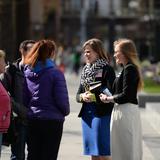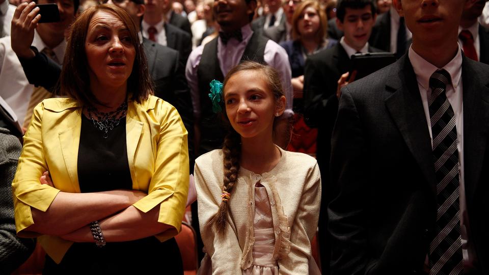 - Conference goers during general conference weekend, 5–6 April 2014