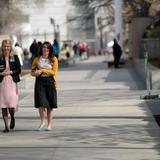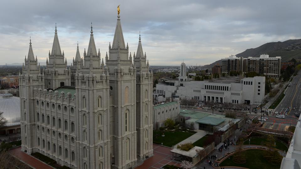 - A couple walks near Temple Square in Salt Lake City, Utah during general conference weekend, 5–6 April 2014